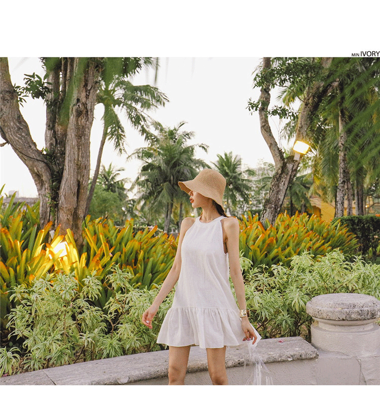 CGB150-40B 掛脖裙夏小香風無袖連衣裙(2色)