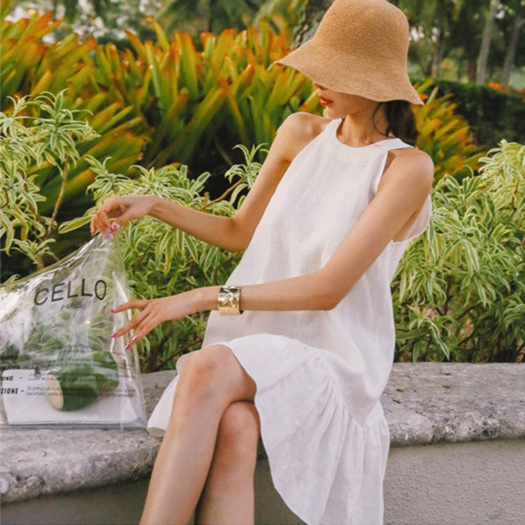 領型:圓領 袖長:無袖 季節:夏季 裙長:中長裙