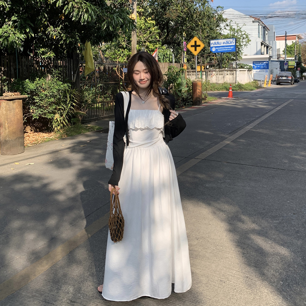 版型:A字型 組合形式:單件 領型:荷葉領 裙長:長裙 袖長:無袖 季節:夏季