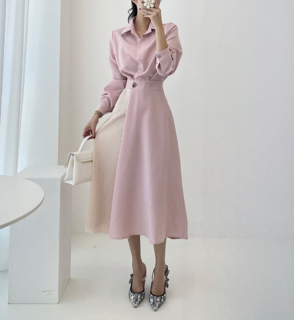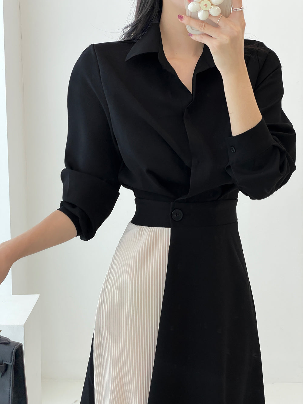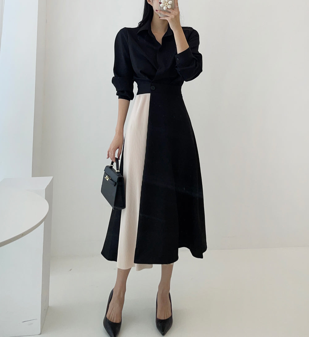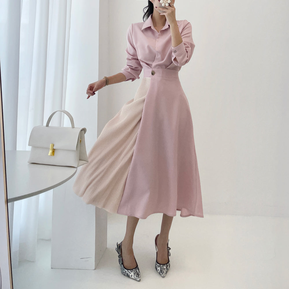 CGB7735-85B 秋季拼色收腰顯瘦襯衫連衣裙(3色)