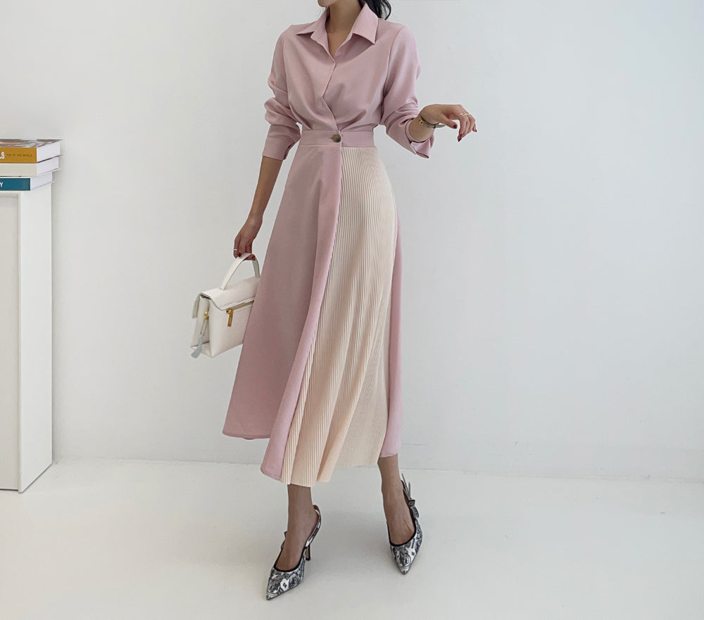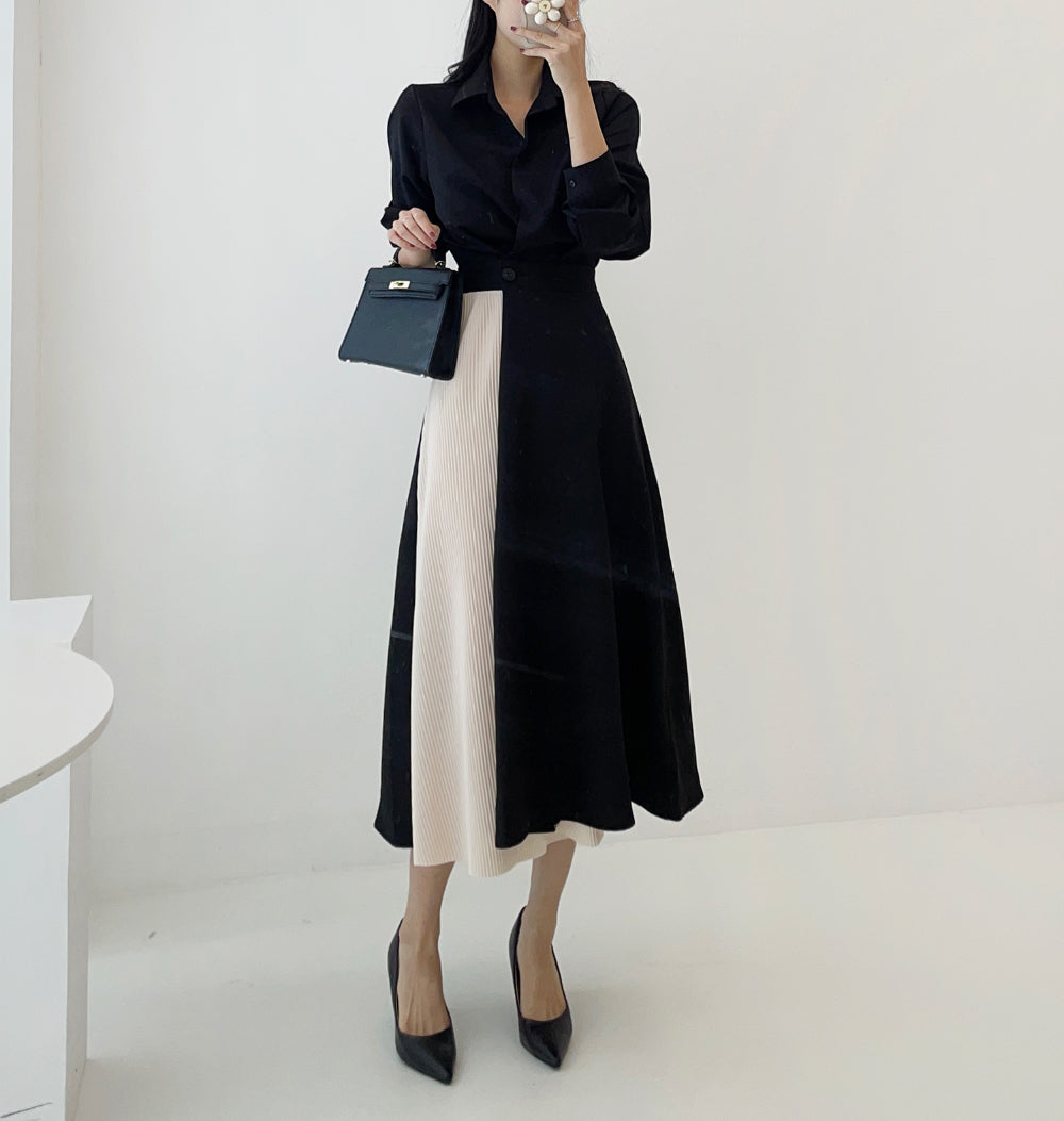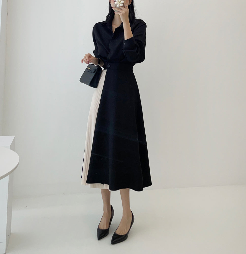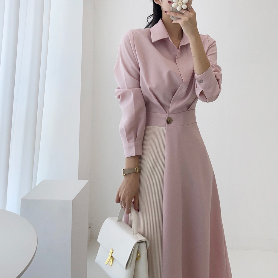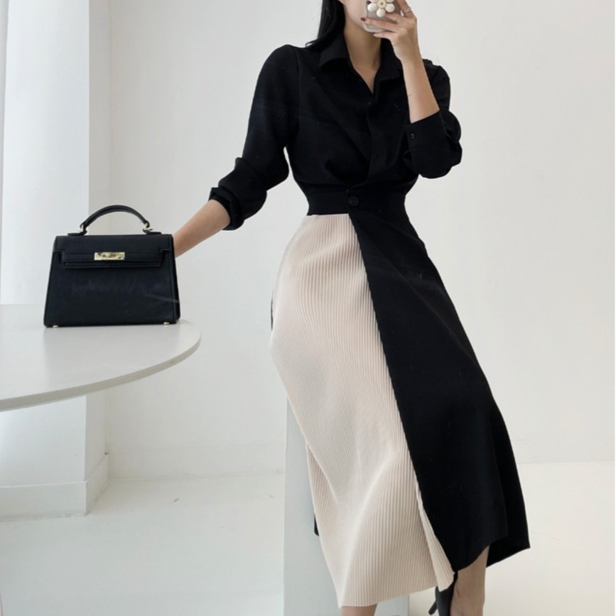CGB7735-85B 秋季拼色收腰顯瘦襯衫連衣裙(3色)