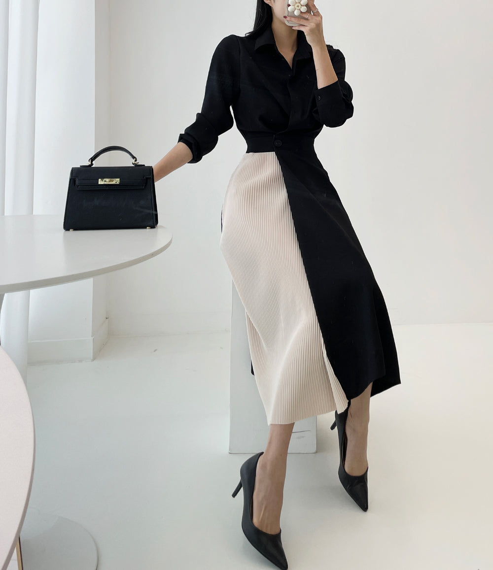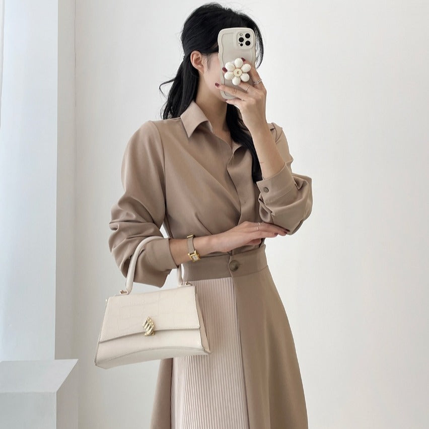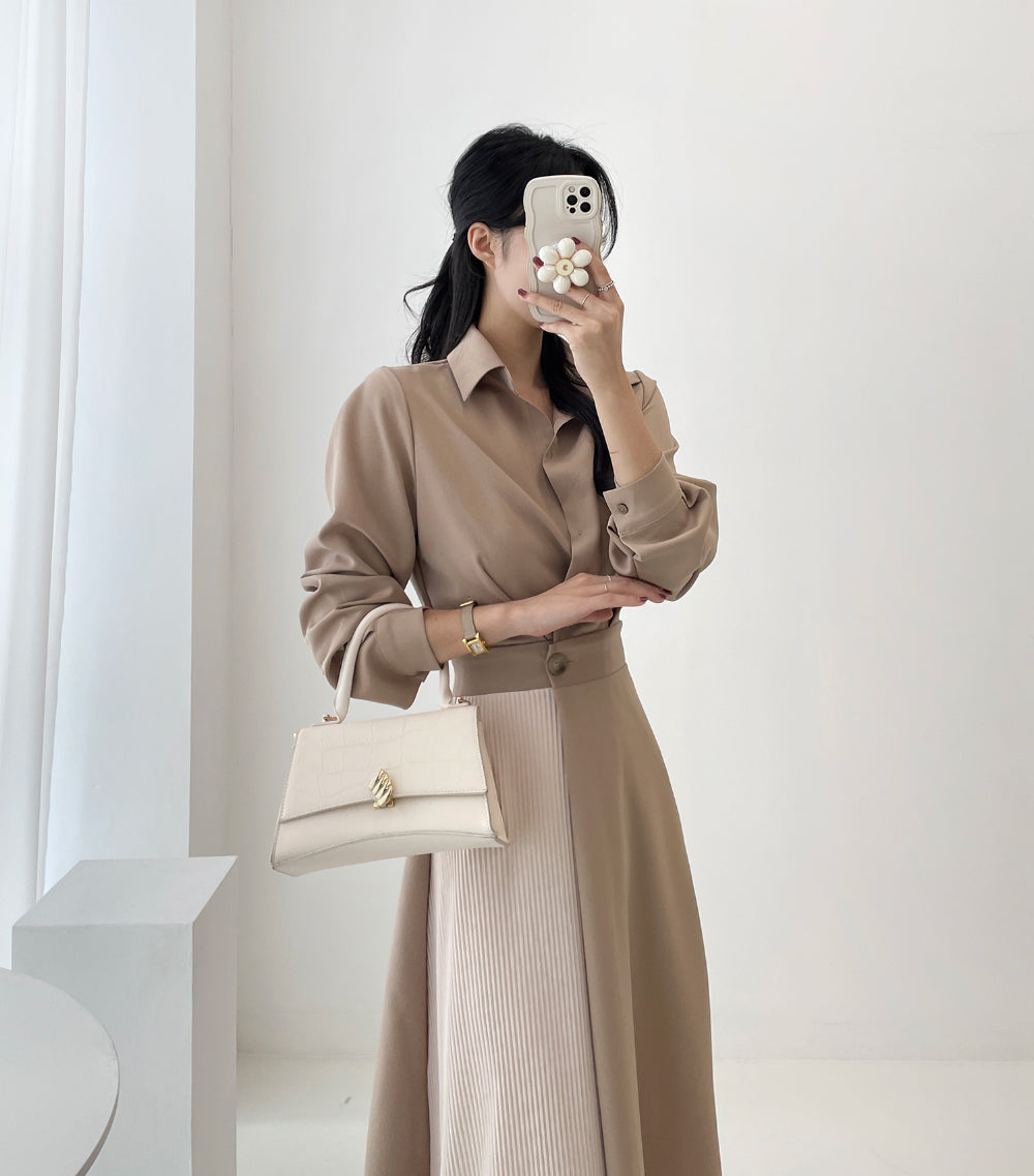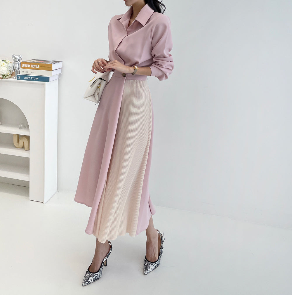 CGB7735-85B 秋季拼色收腰顯瘦襯衫連衣裙(3色)