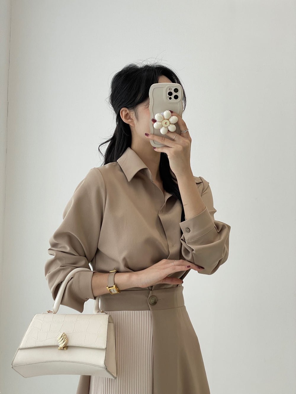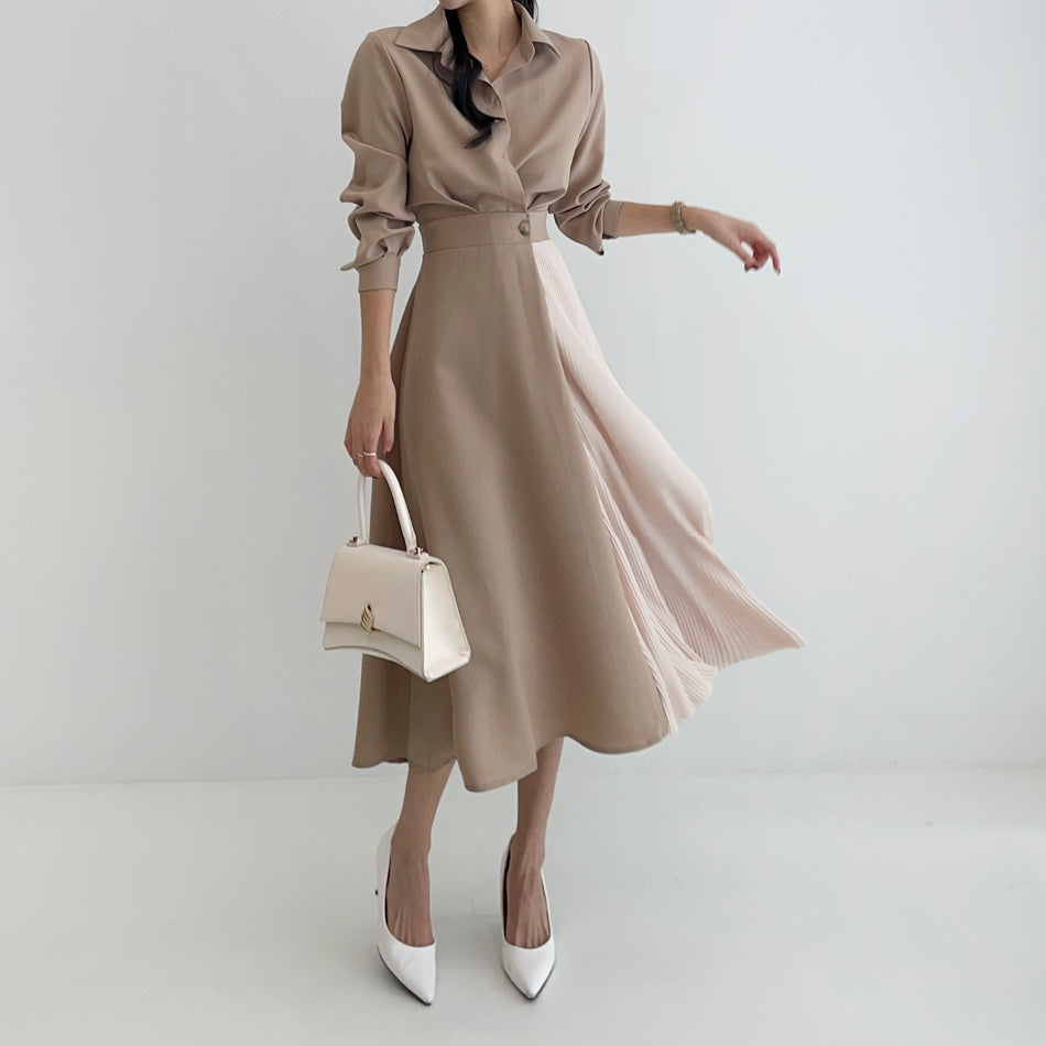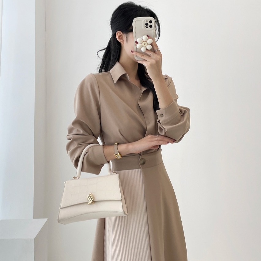 通勤:韓版 款式:襯衫裙 適用季節:秋季 廓形:A型 袖型:襯衫袖