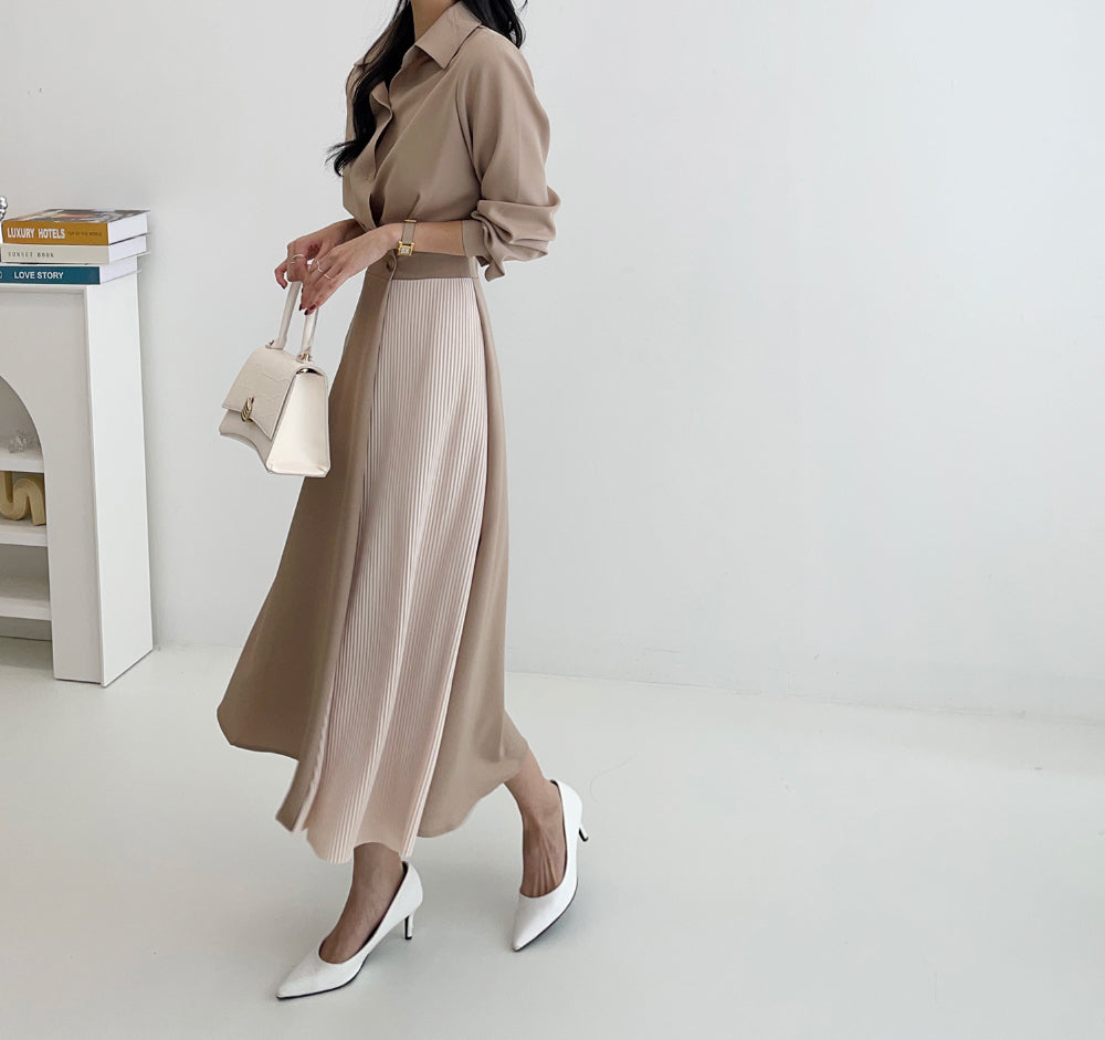 腰型:高腰 組合形式:單件 裙長:中長裙 領型:POLO領