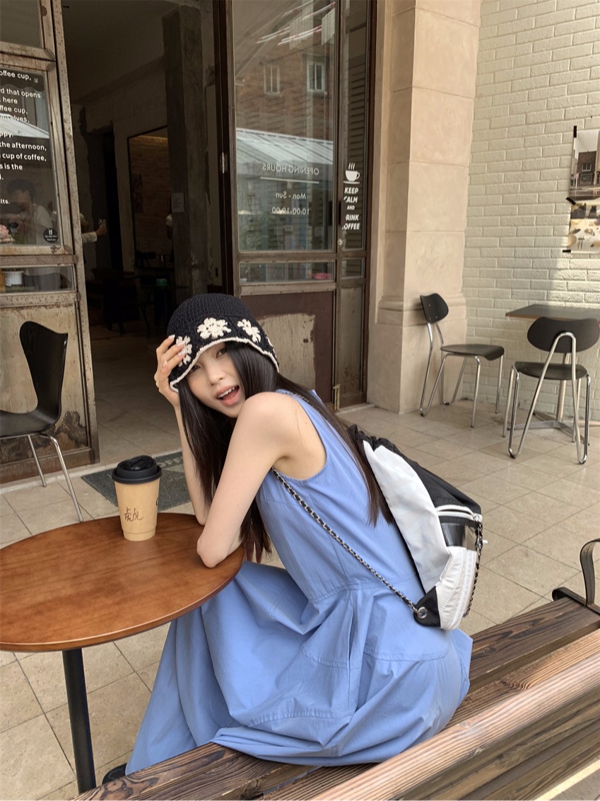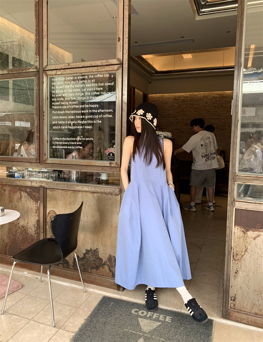 裙長:中長裙 領型:圓領 袖長:無袖