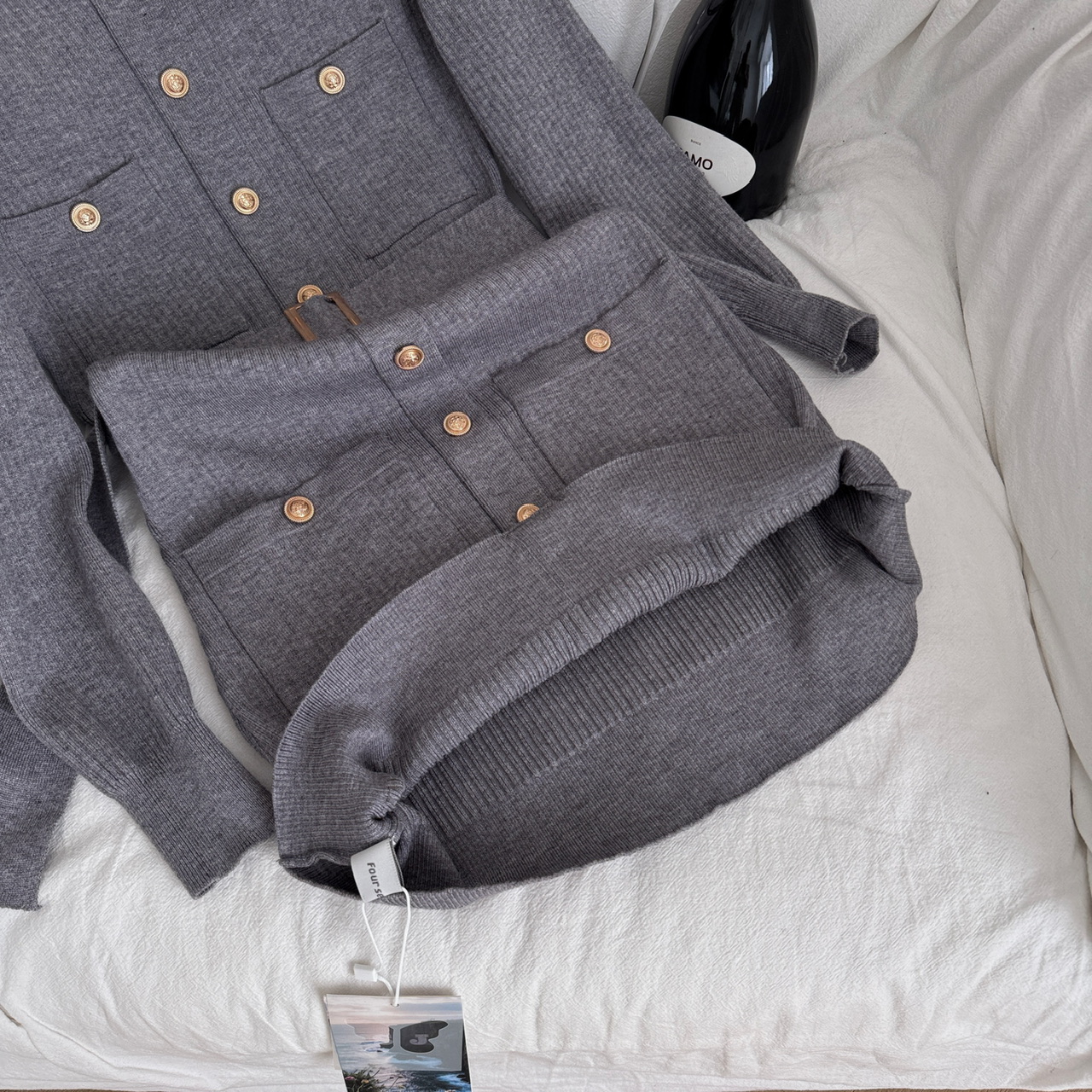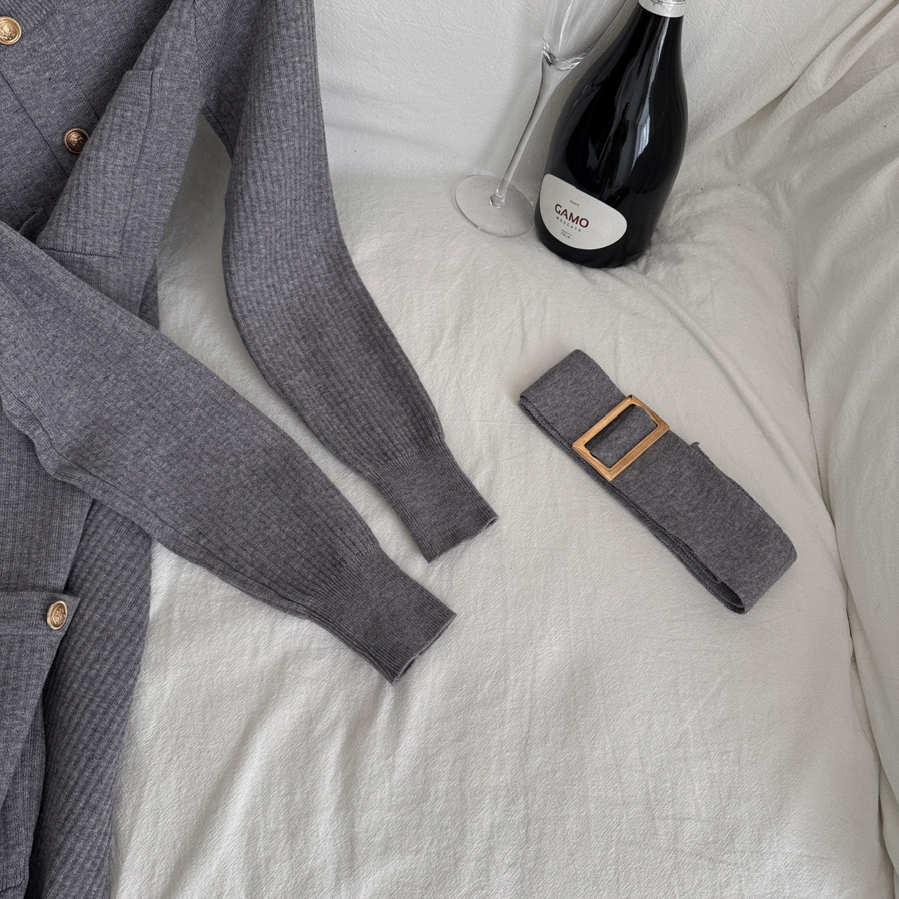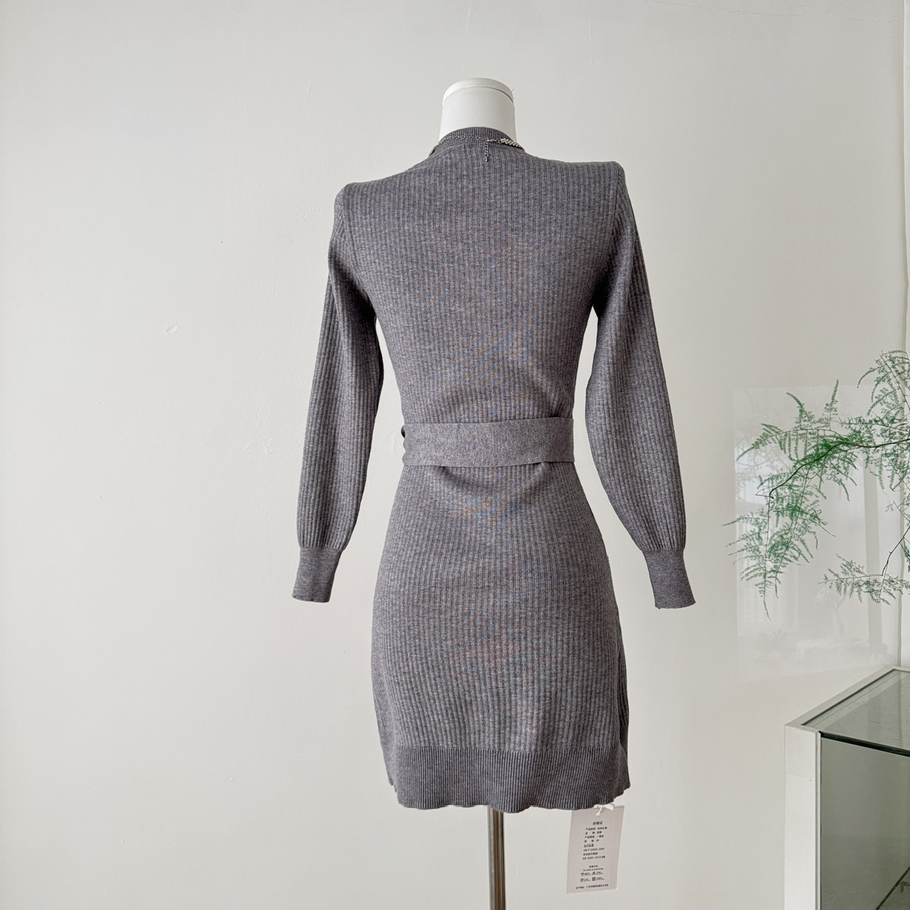 📺︎︎ CGB9493-71B 金扣腰帶長袖圓領針織裙百搭修身毛衣連衣裙(2色)
