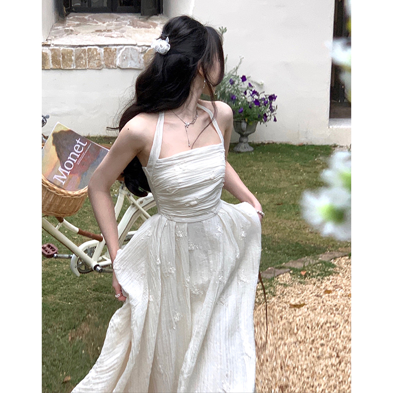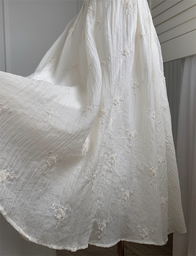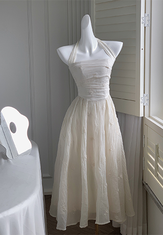 CGBXY 8153-137B 掛脖繡花褶皺收腰連衣裙