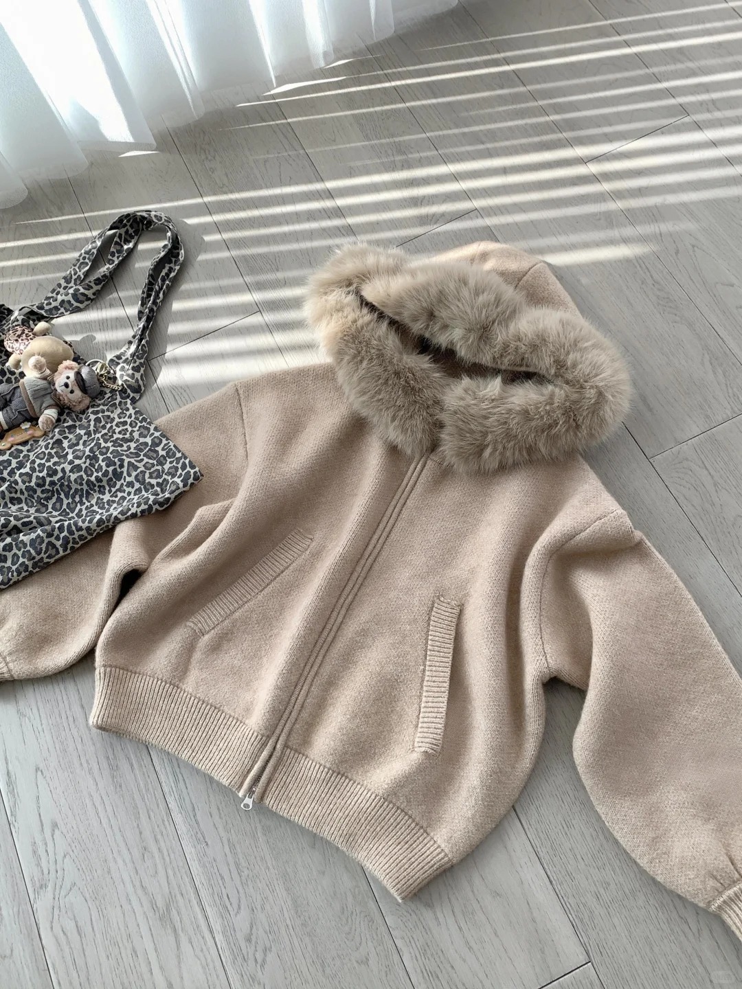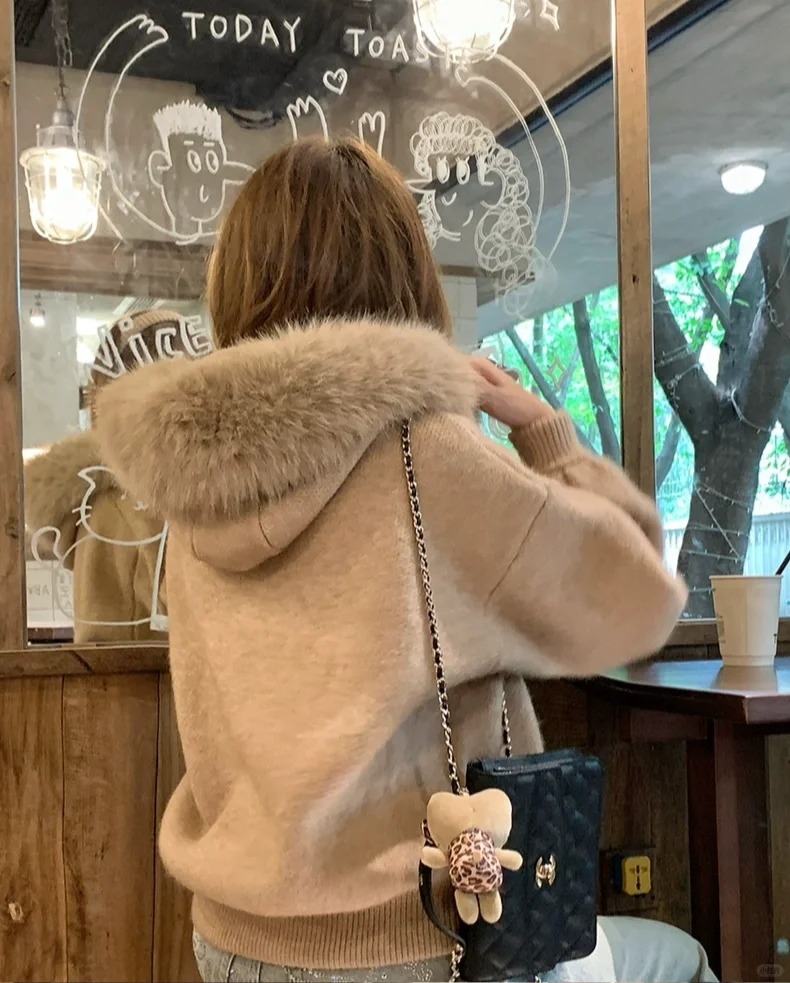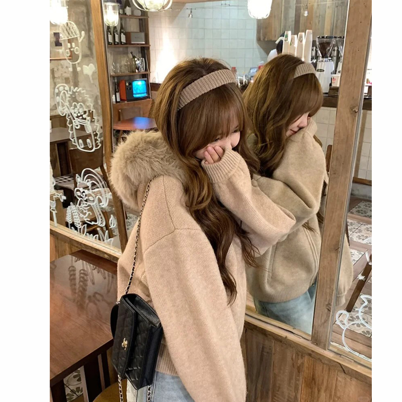 CGC44605-117B 秋冬寬鬆大毛領毛衣開衫外套(2色)