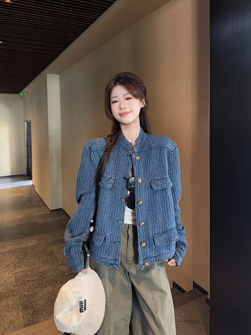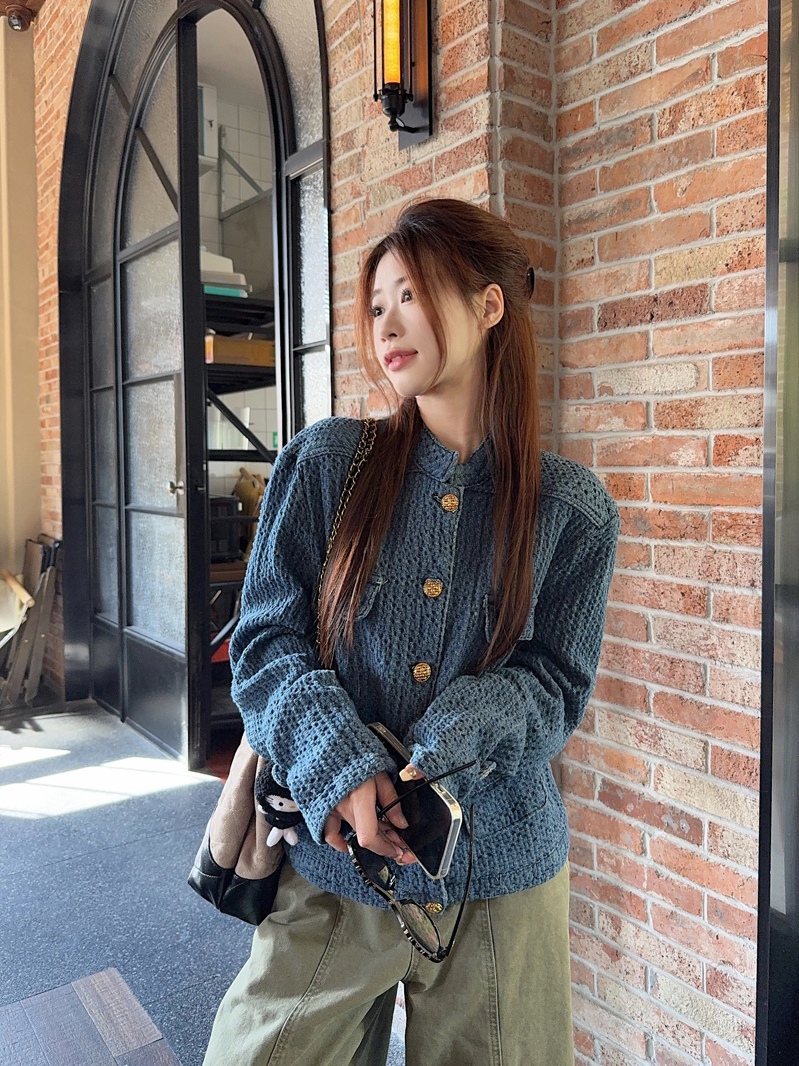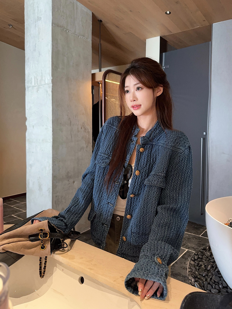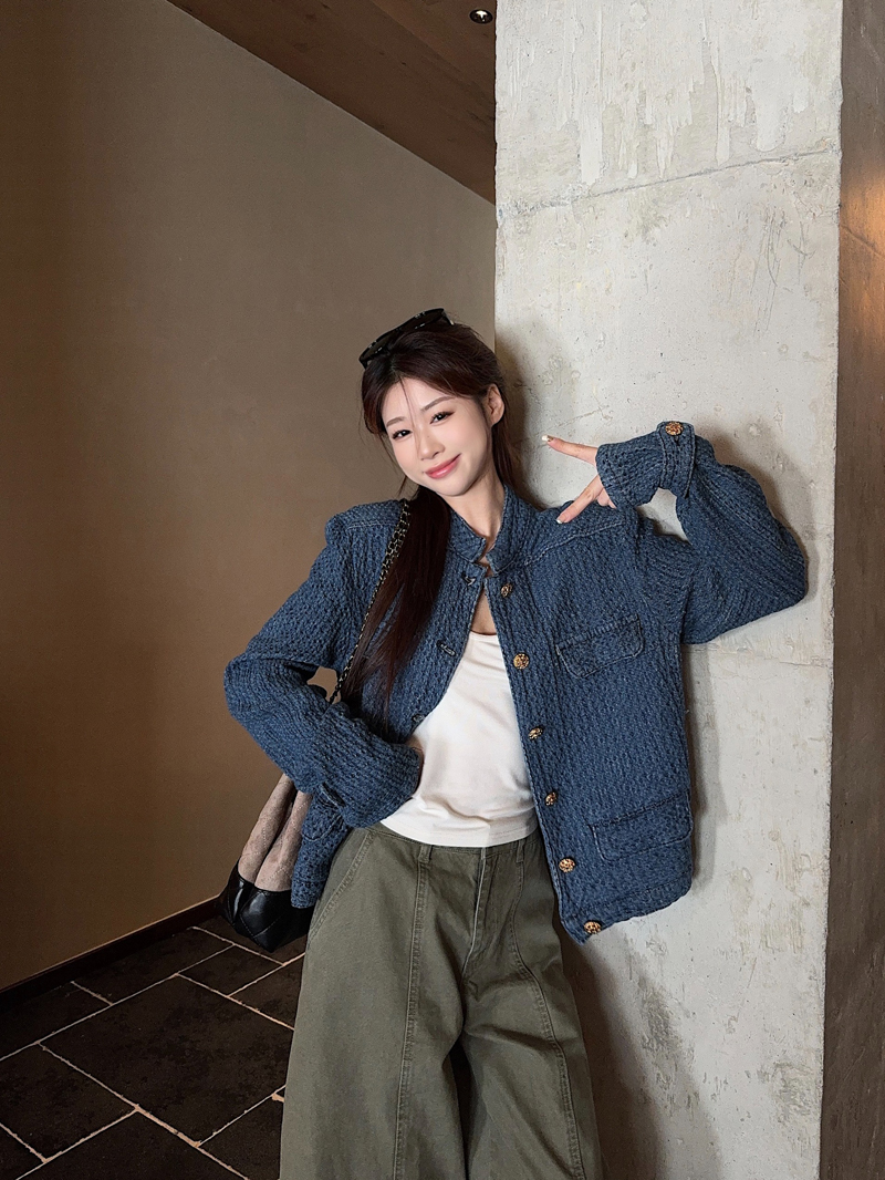 CGCC9914-36H 春秋季小香外套藍色H型立領夾克