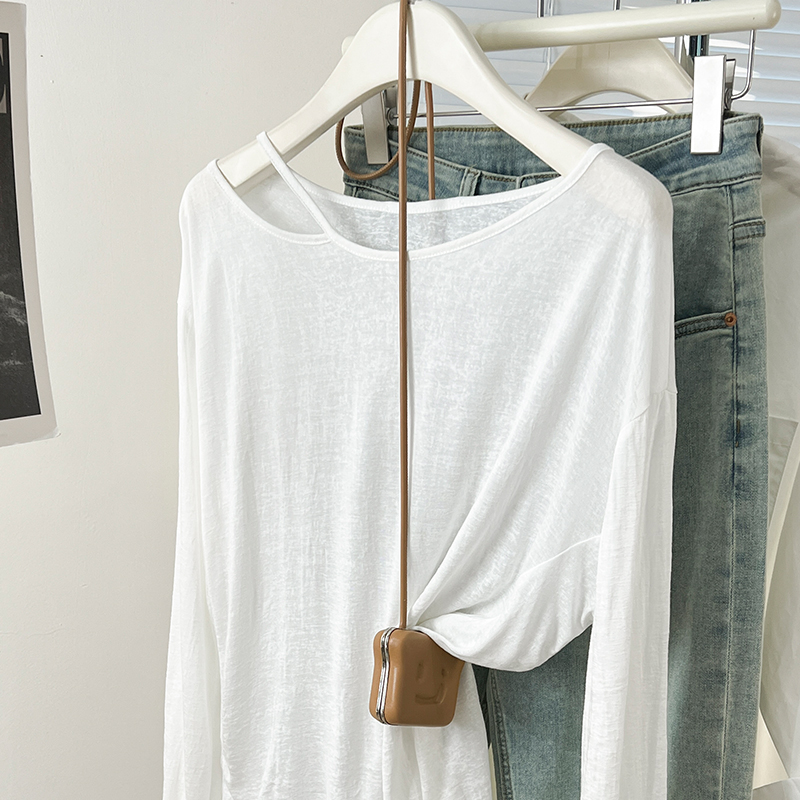 CGD07175-3-42B 夏季開叉露肩防曬寬鬆薄款長袖T恤(2色)