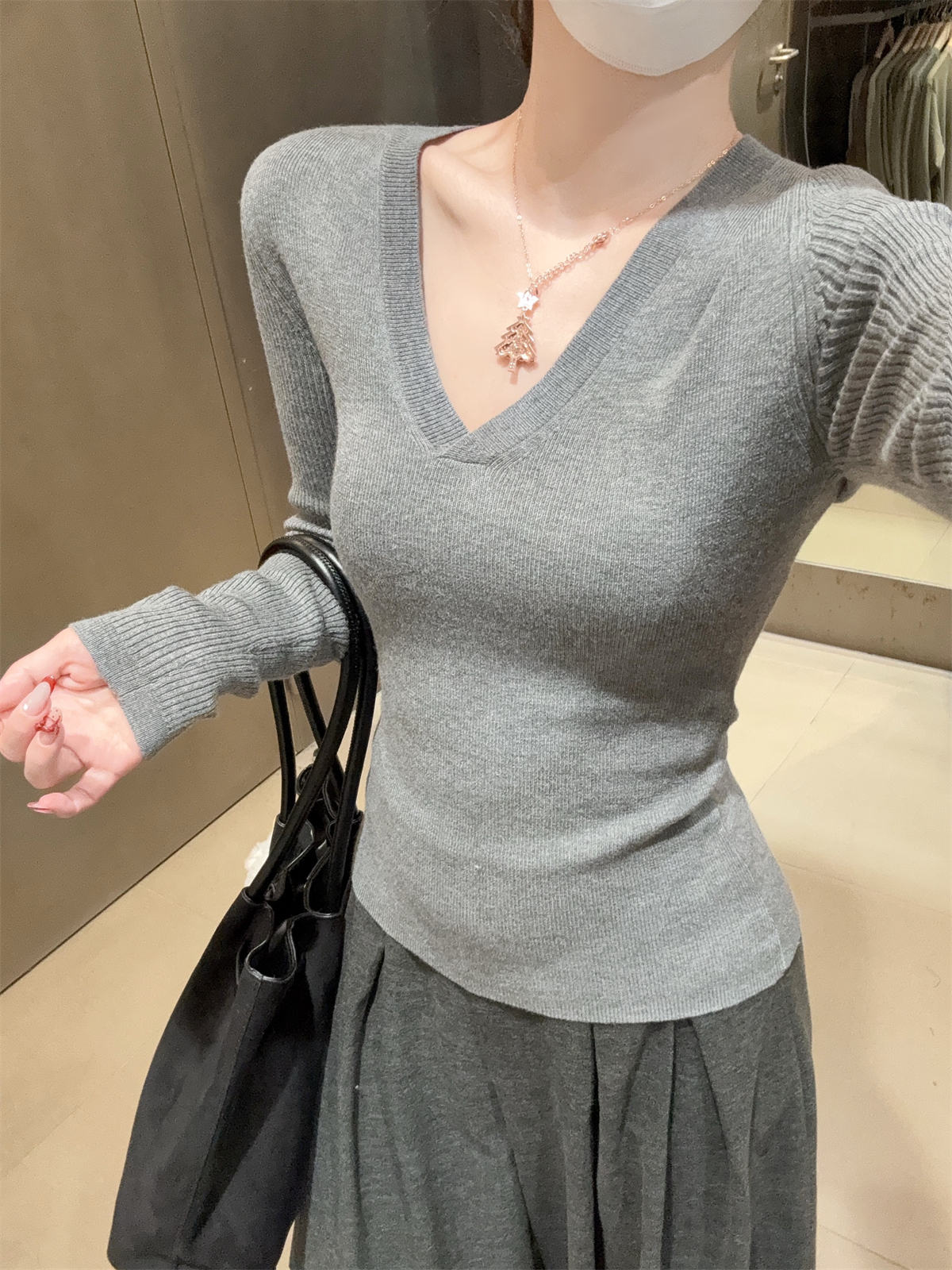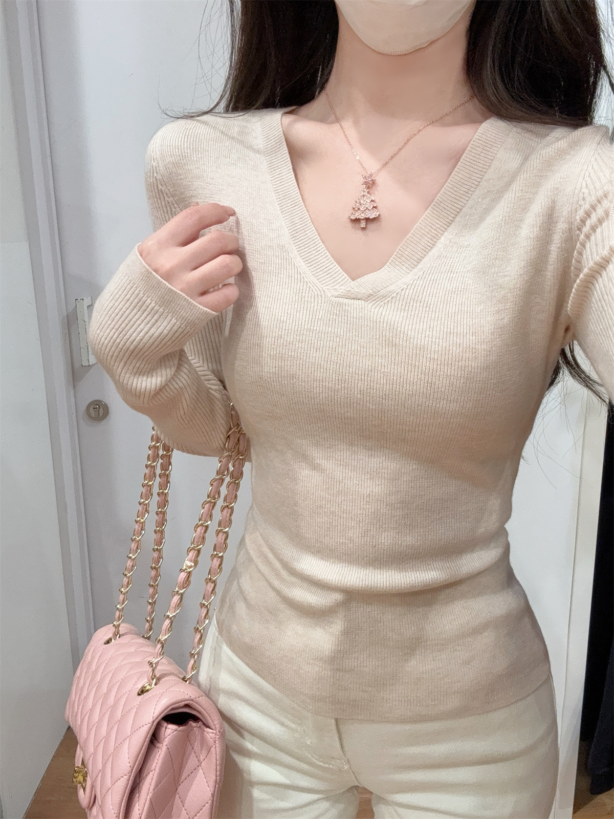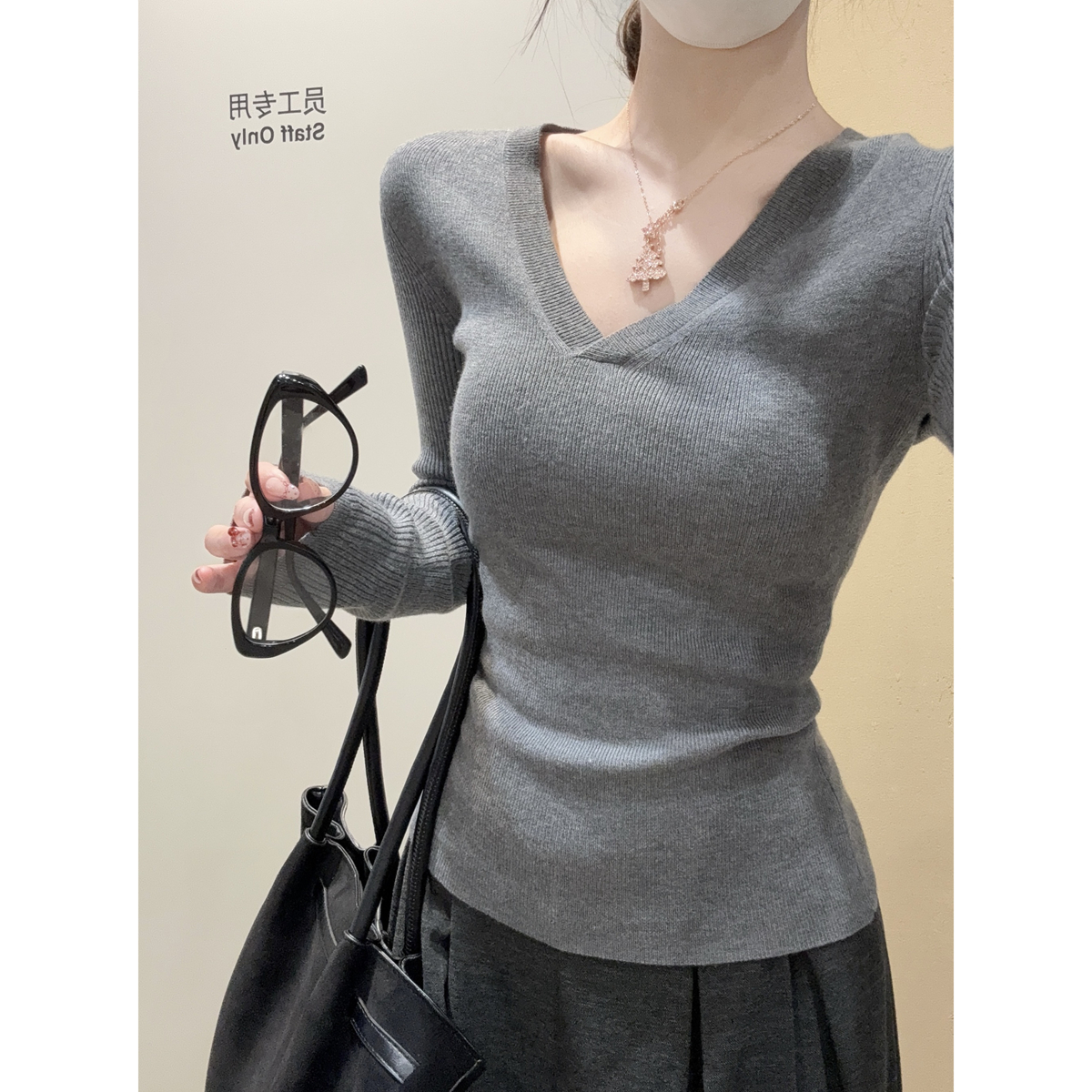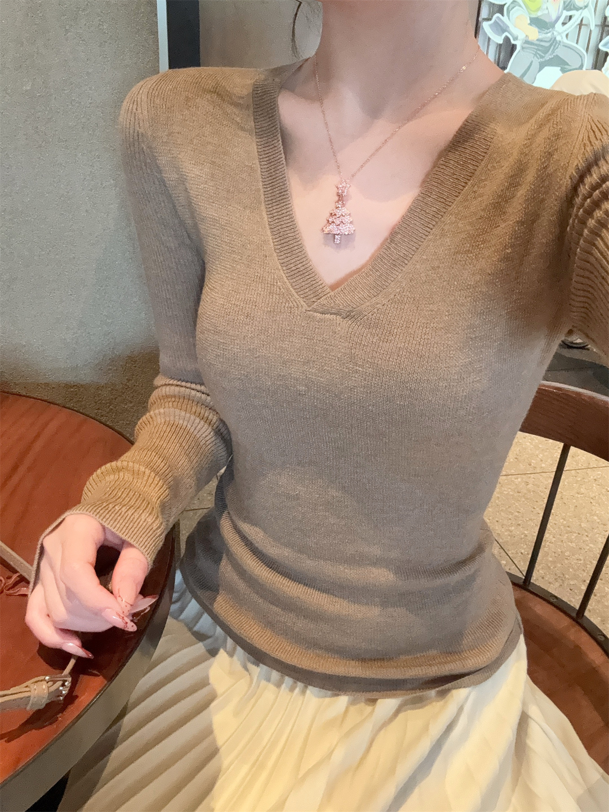 CGD28199-56B 春季V領百搭軟糯長袖針織衫(3色)