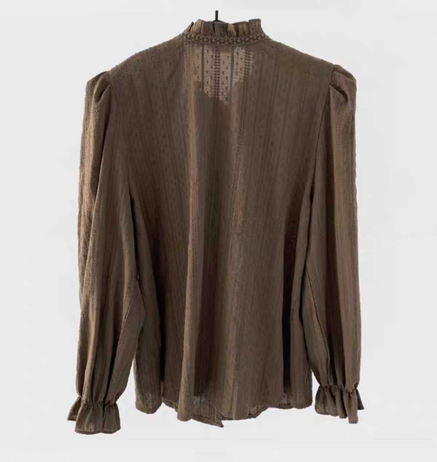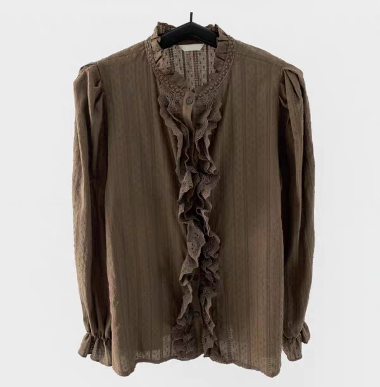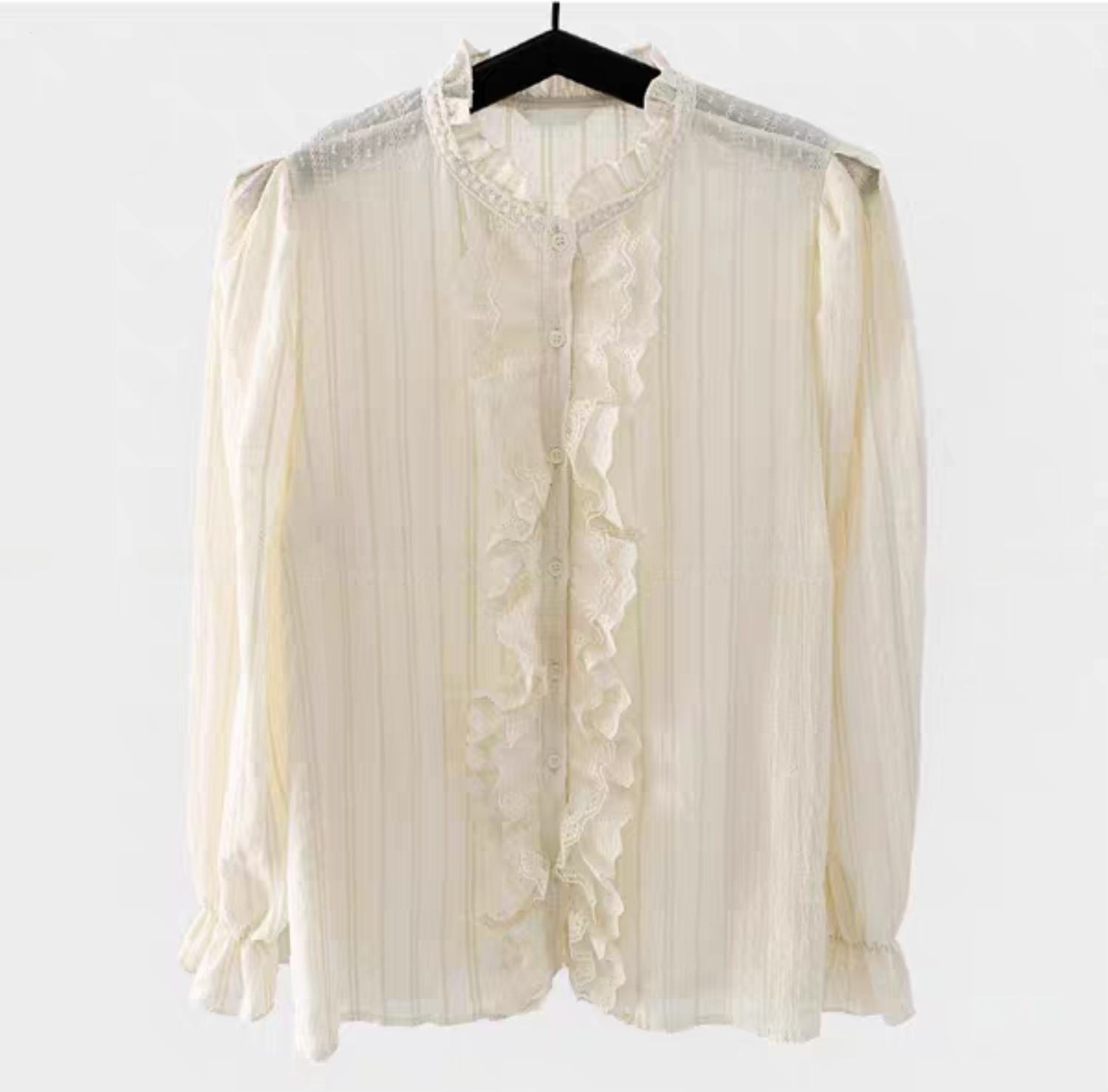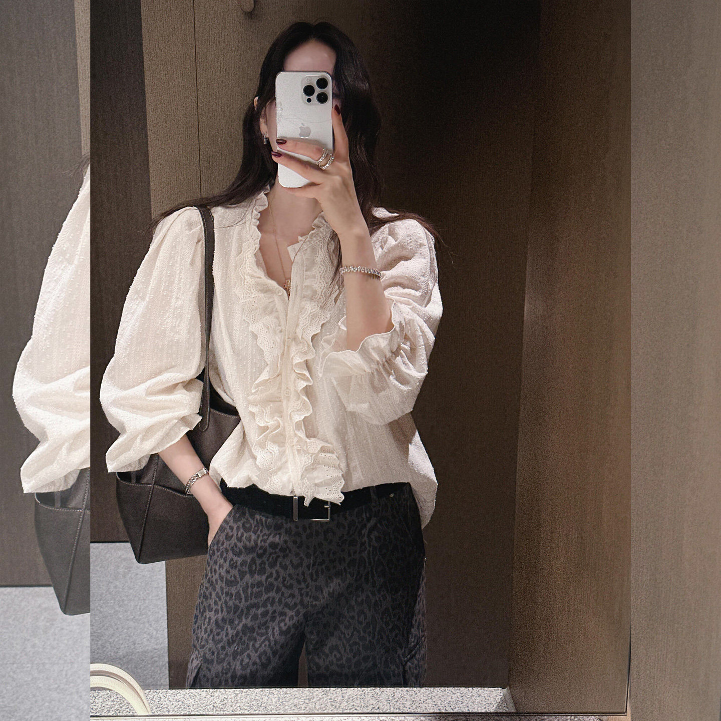 CGD6133-58B 重工刺繡蕾絲花邊寬鬆長袖襯衫(2色)