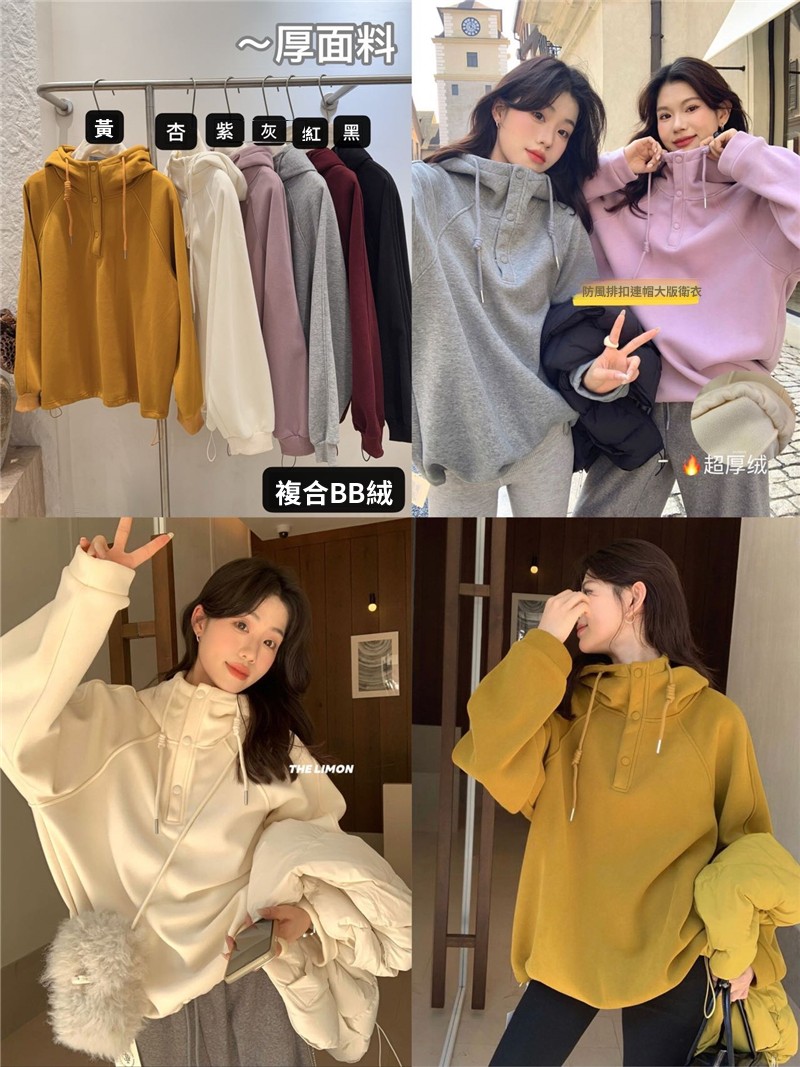 CGD6580-92B 寬鬆連帽加絨衛衣保暖加厚百搭厚實上衣(6色)