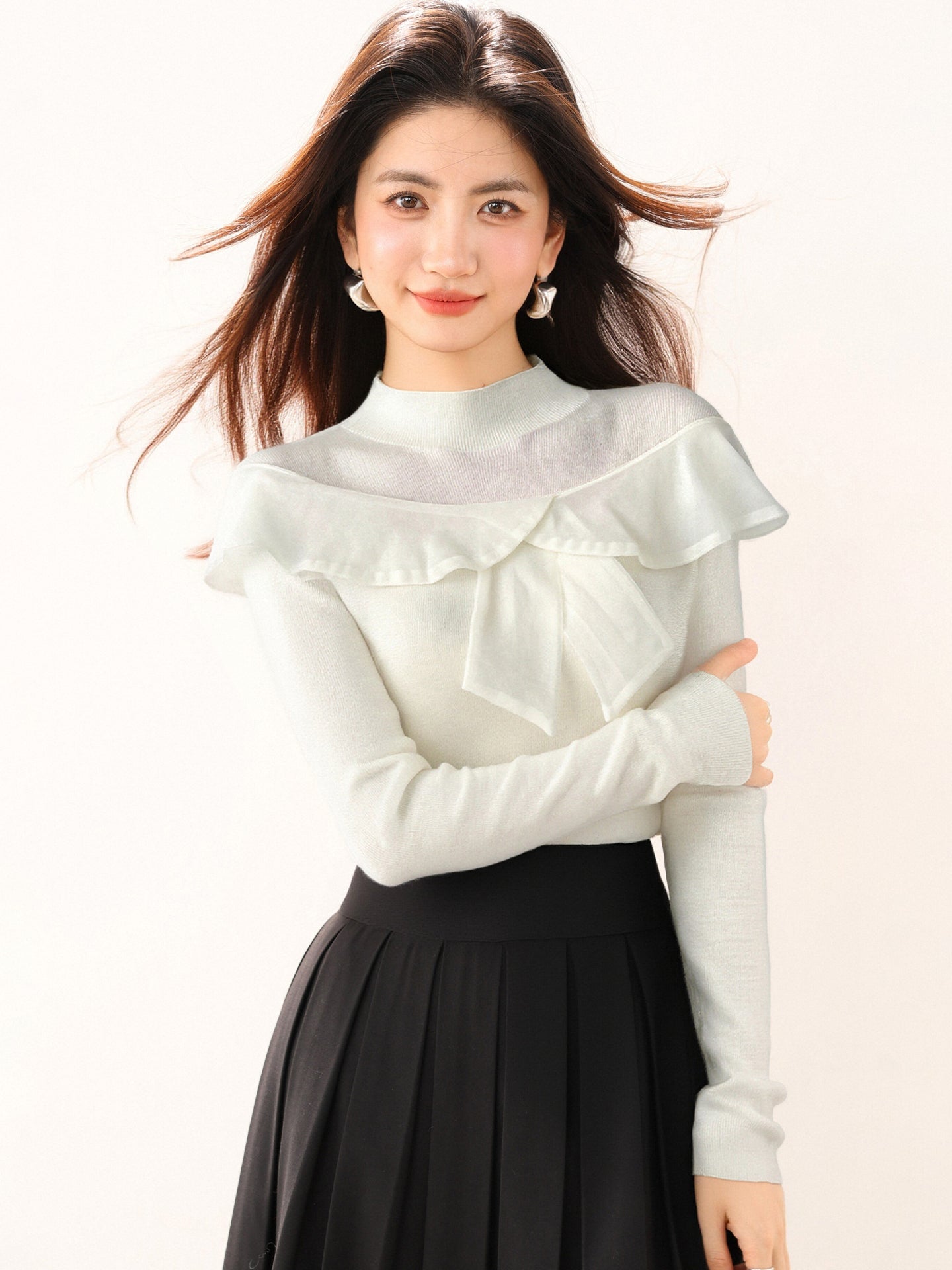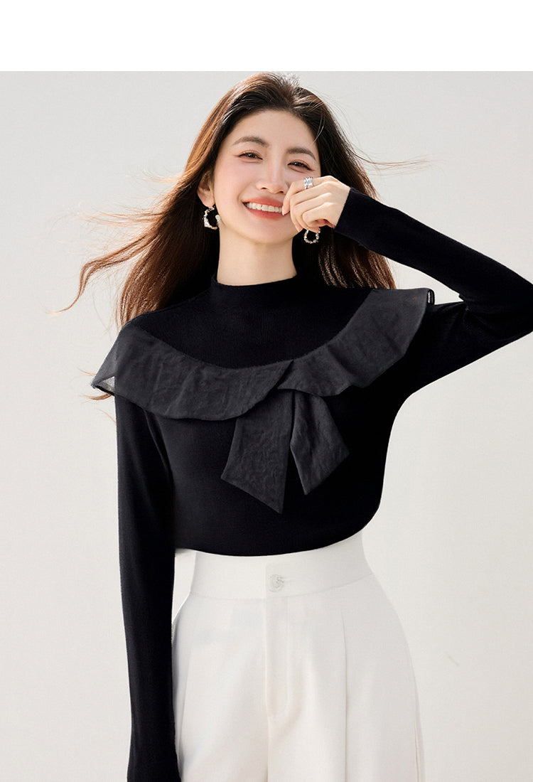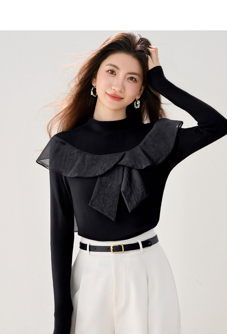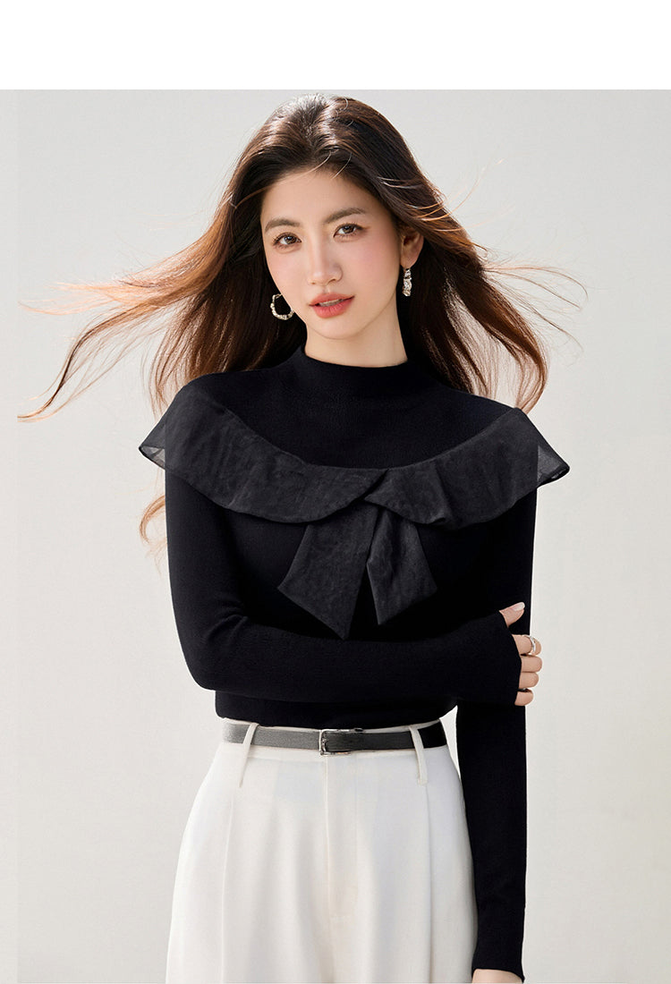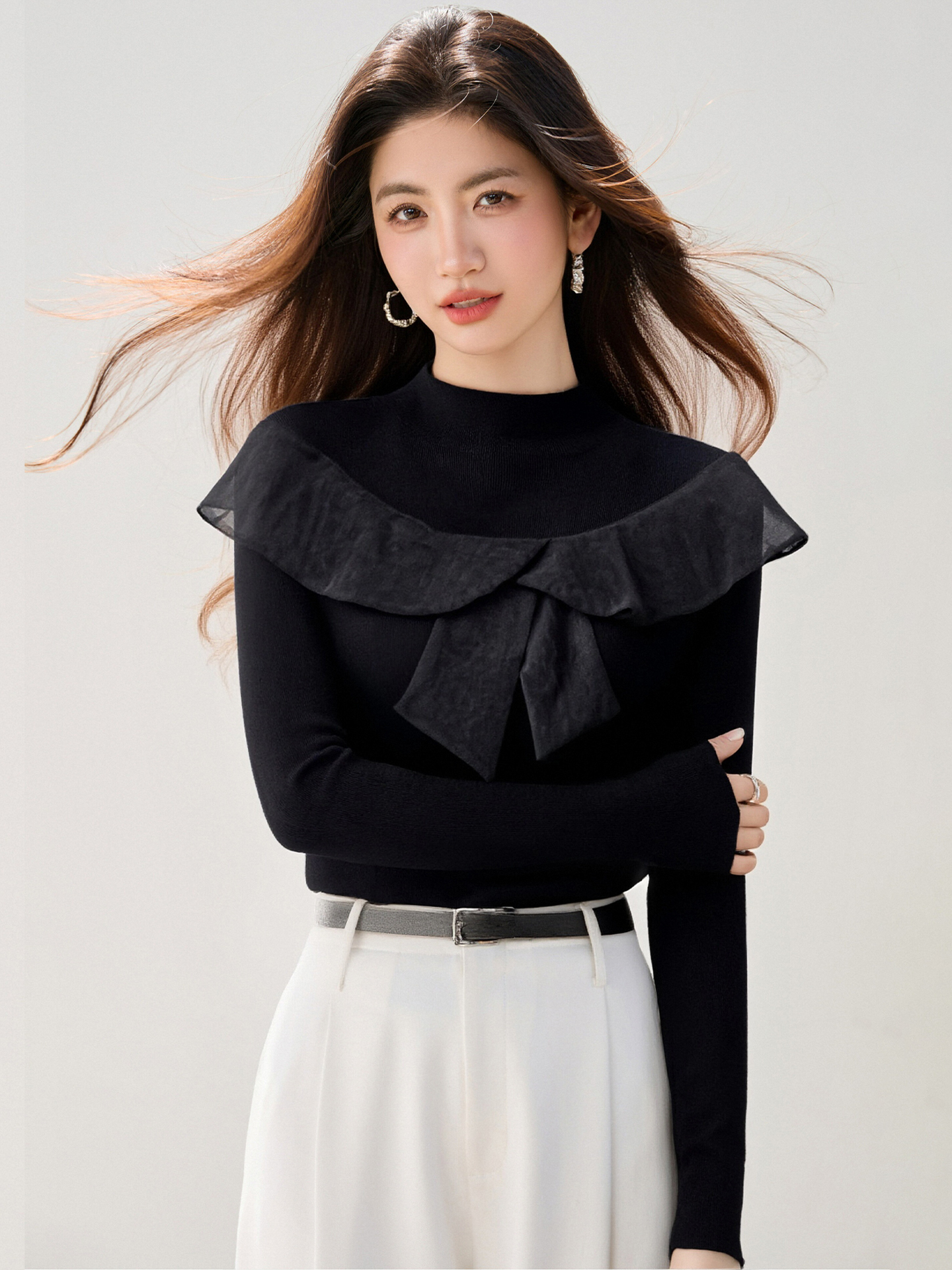 CGD9766-89B 半高領拼接針織內搭秋冬修身顯瘦長袖(2色)