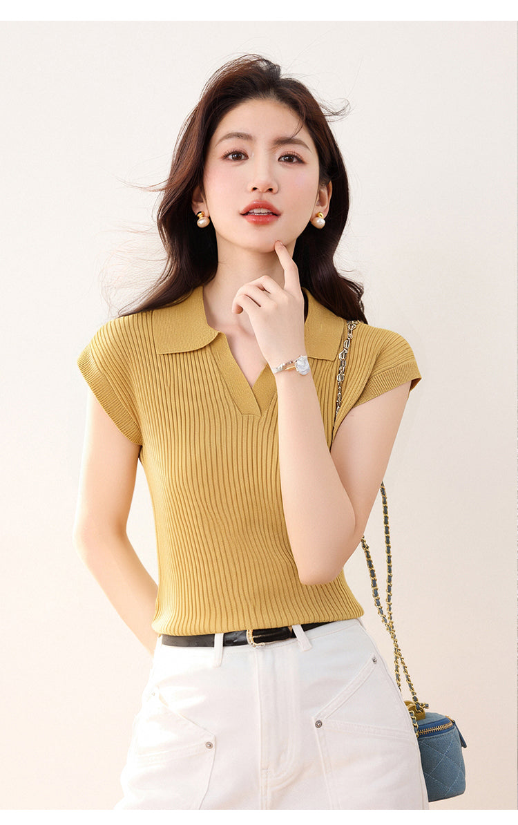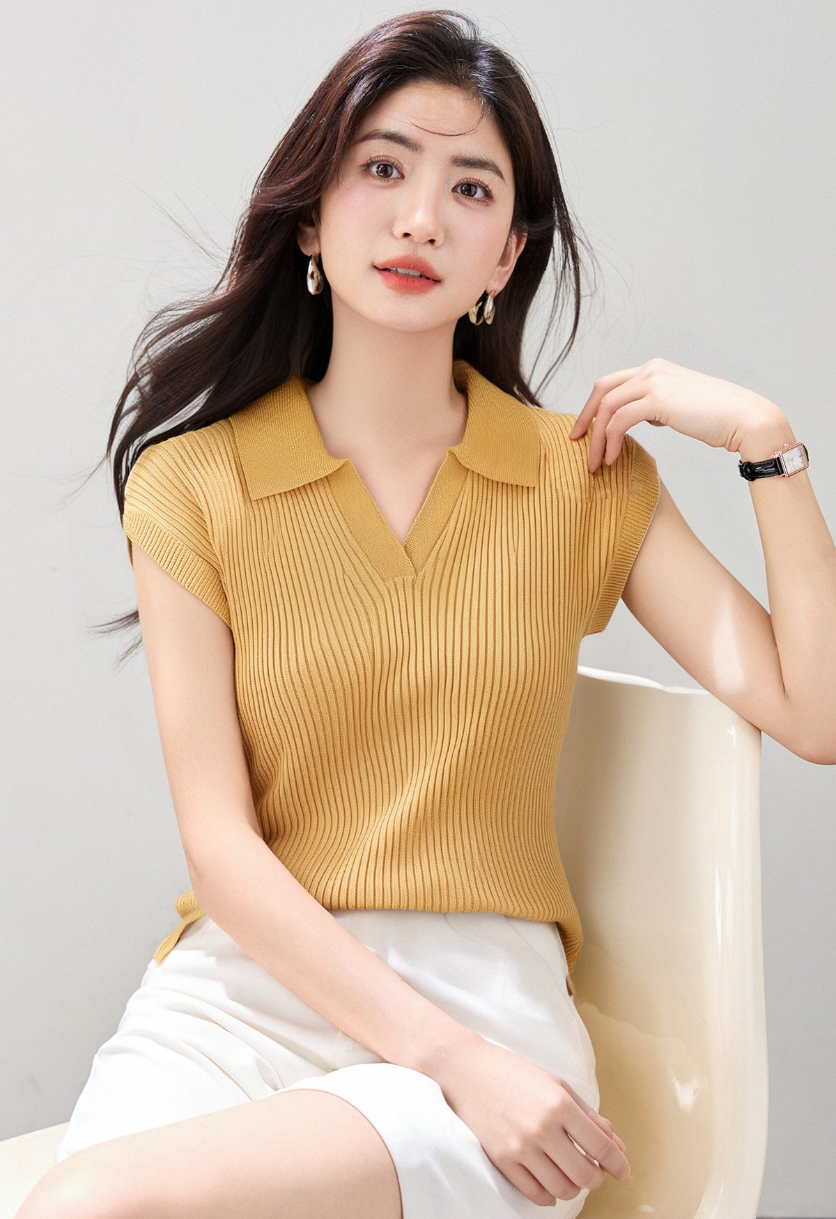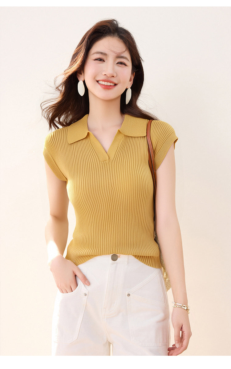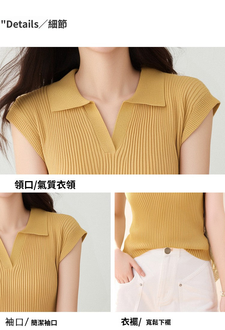 CGE0476-17B 正肩T恤夏款冰絲針織衫短袖修身短款POLO領上衣