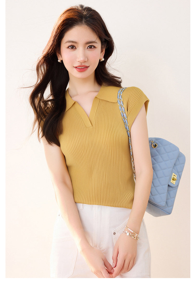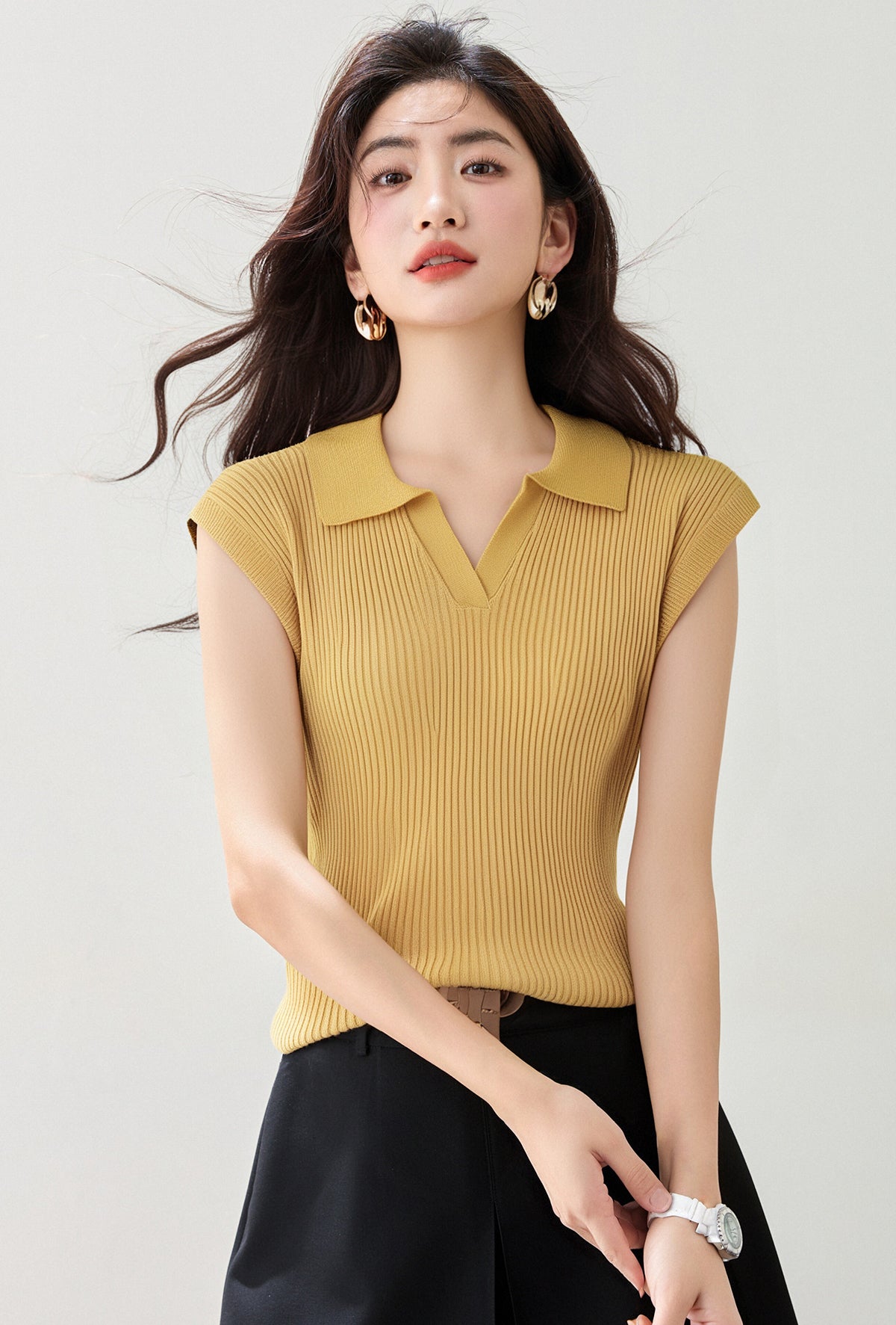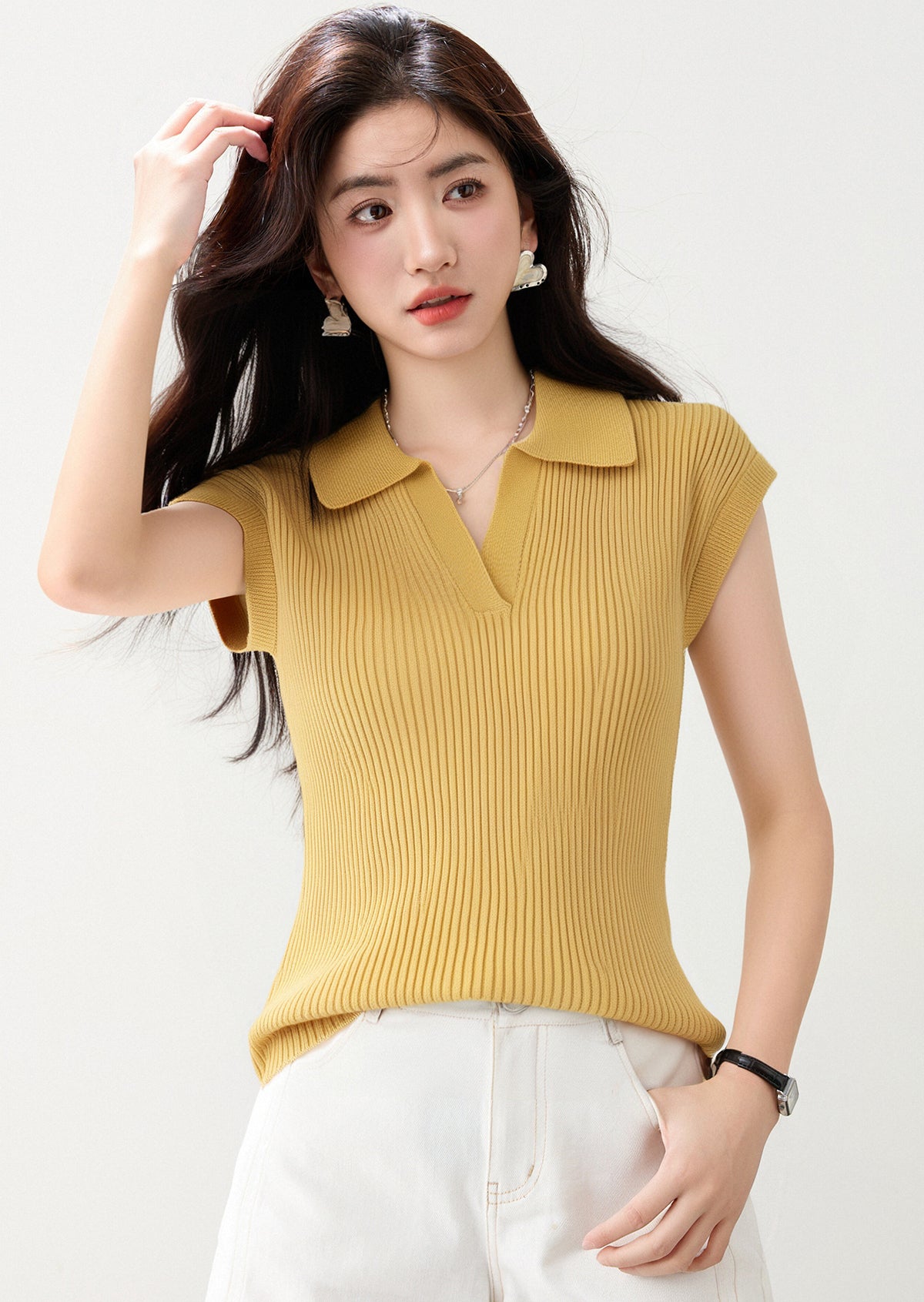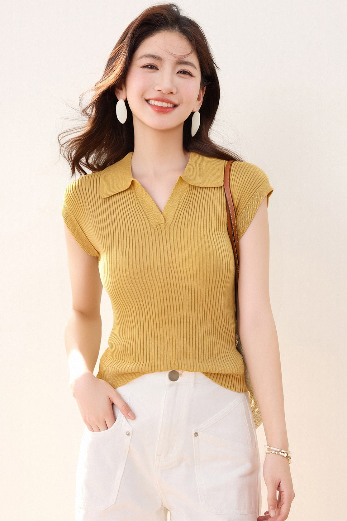 CGE0476-17B 正肩T恤夏款冰絲針織衫短袖修身短款POLO領上衣