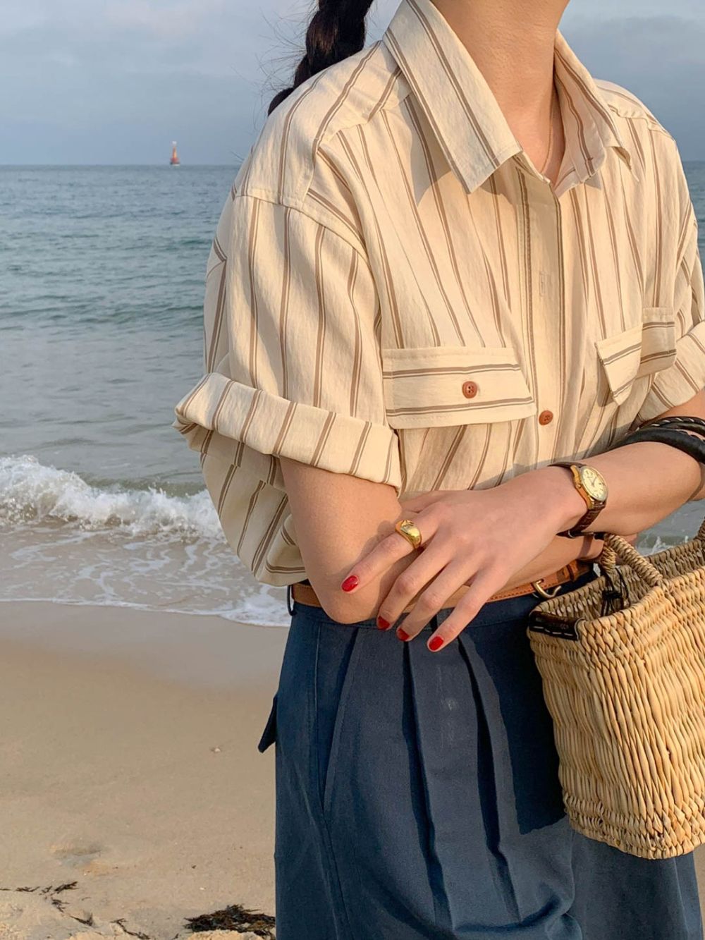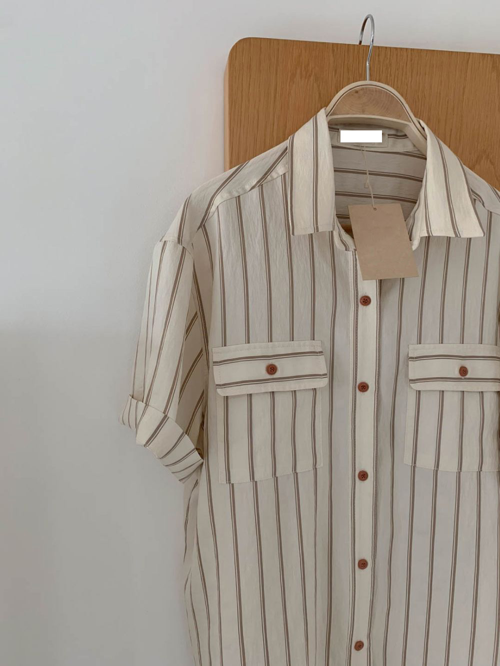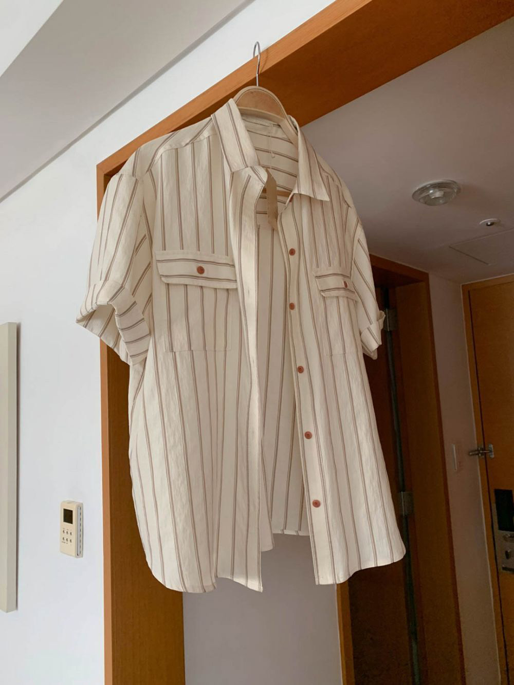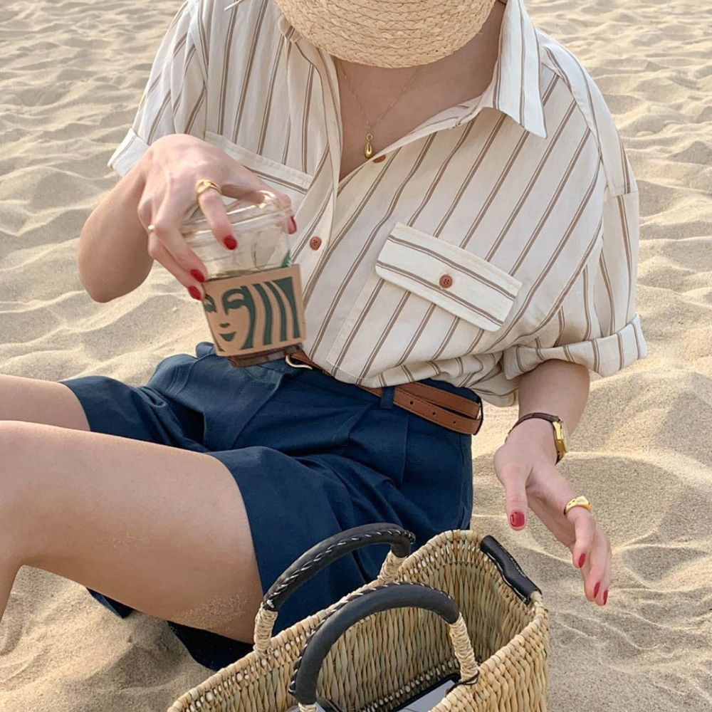 CGE11885-17B 基礎百搭款簡約條紋短袖襯衫(2色)