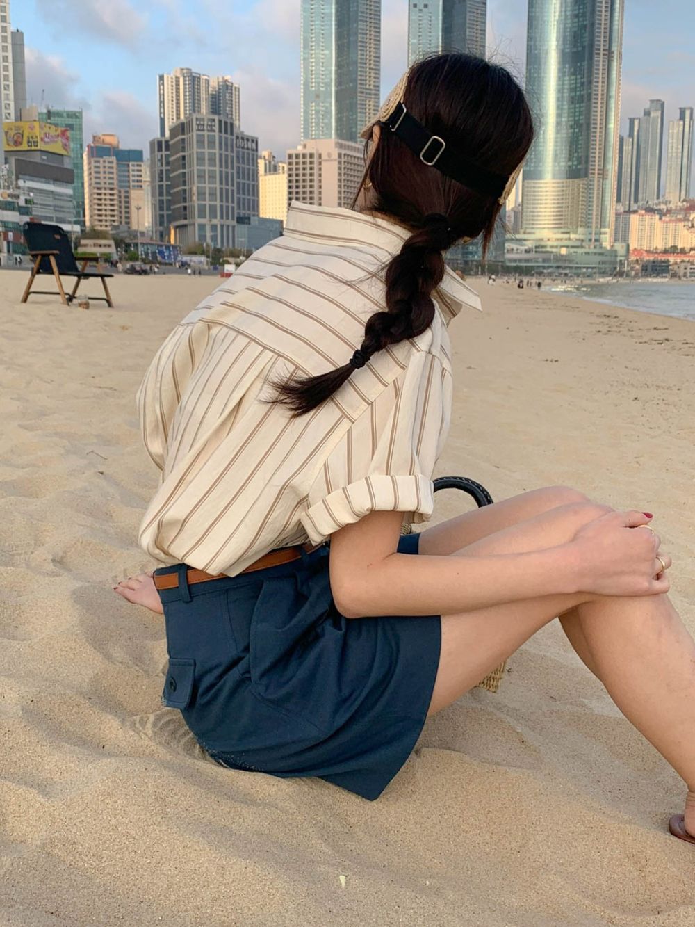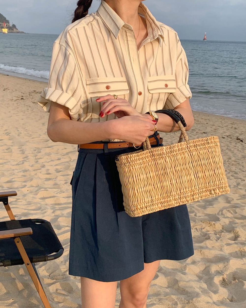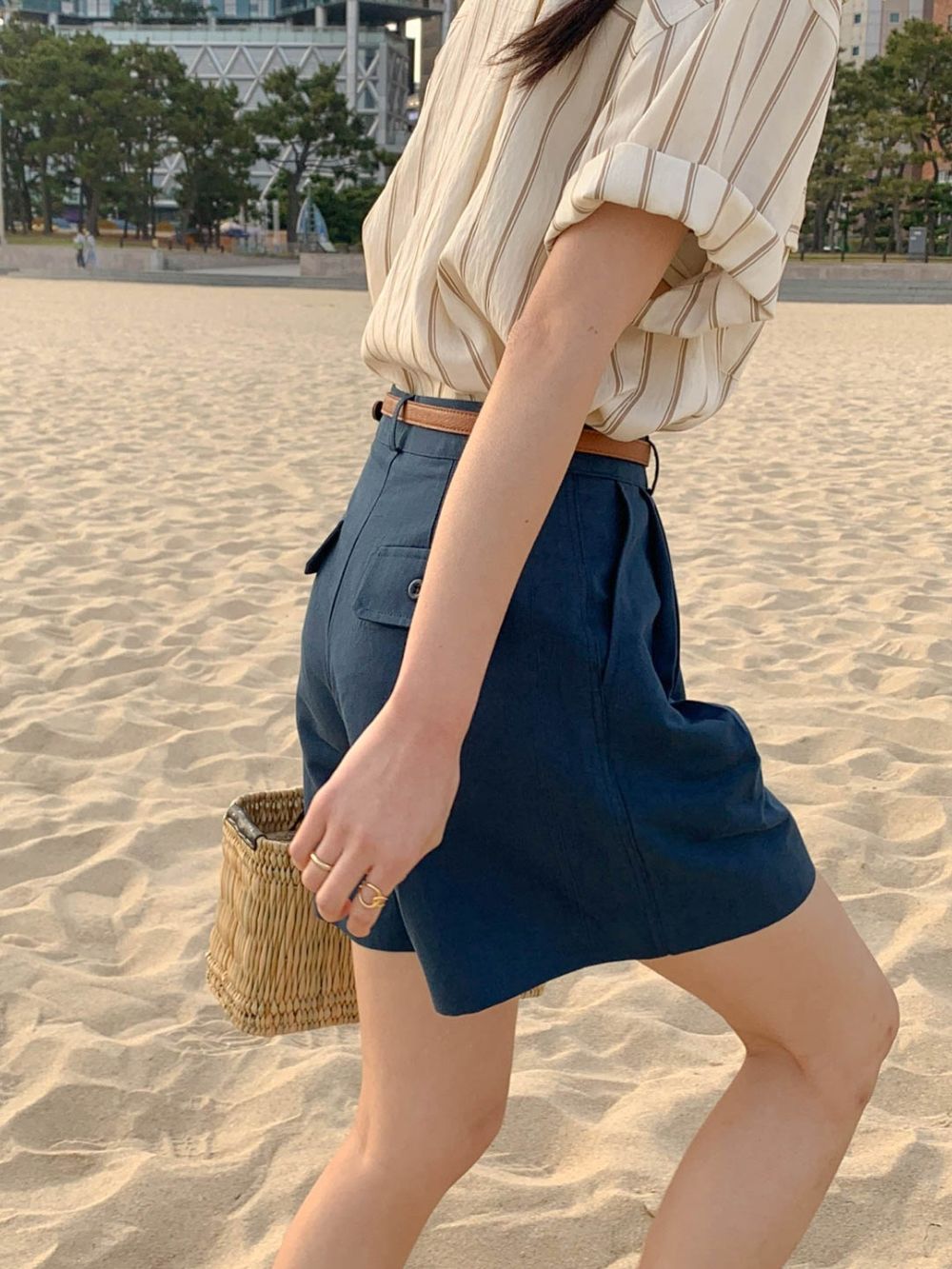 CGE11885-17B 基礎百搭款簡約條紋短袖襯衫(2色)