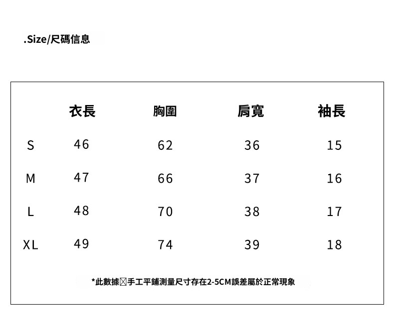 ※尺寸表皆以平放量並會因布料強性·水洗處理丶量測起訖點等因率,與實際商品尺寸略有誤差