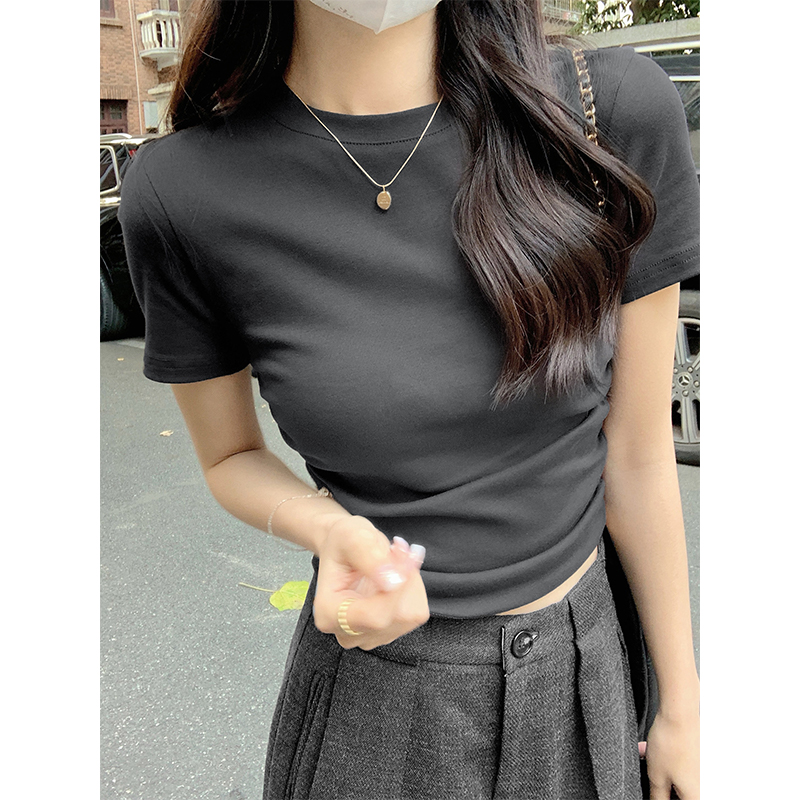 📺︎︎ CGE1344-49B 春夏季正肩短袖收腰抽褶純棉T恤(2色)