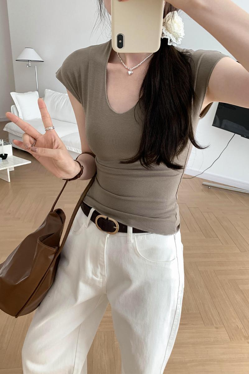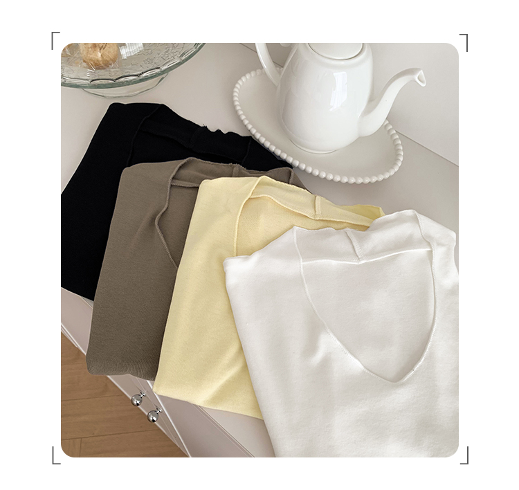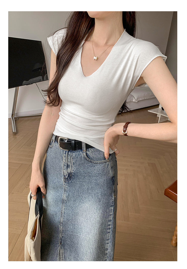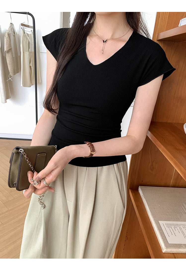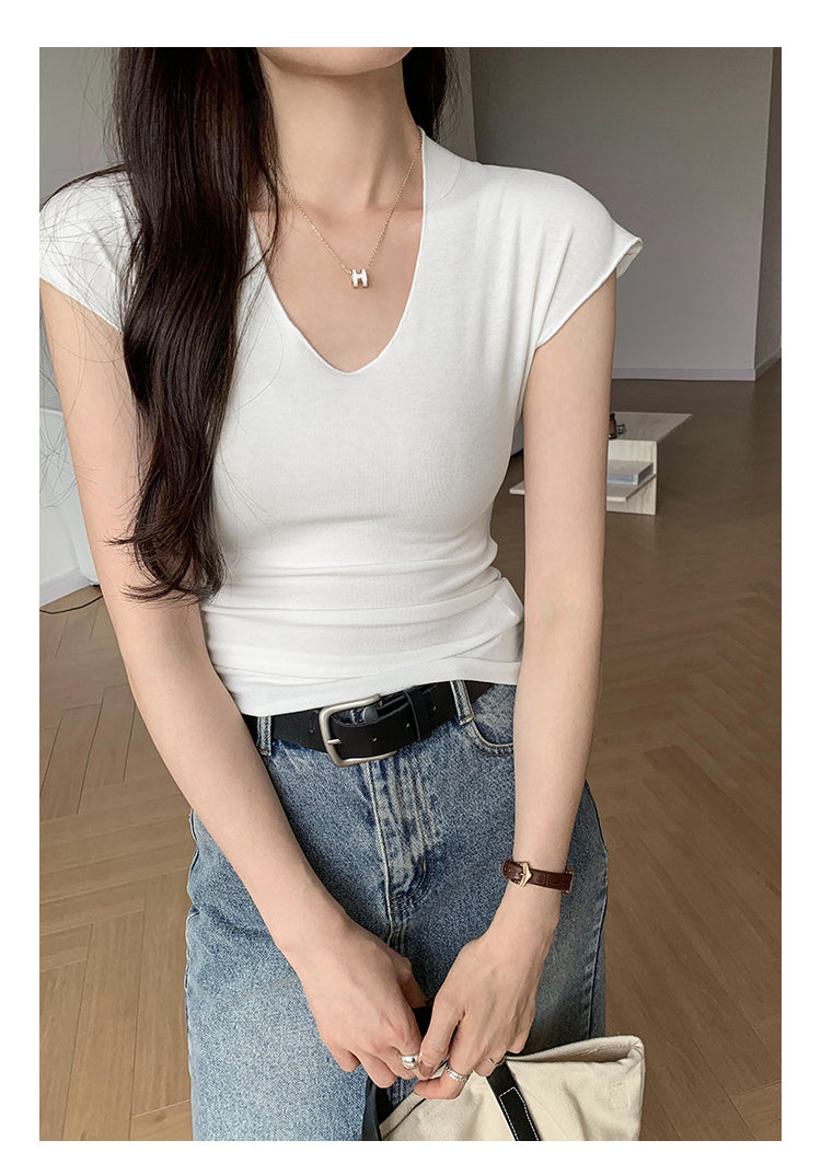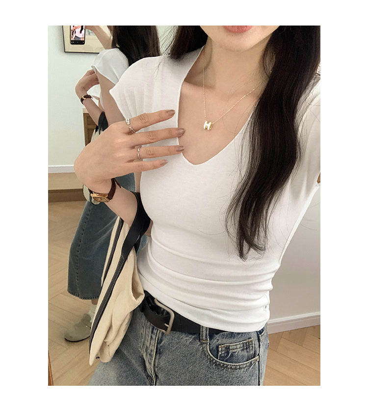 CGE240120-45B 小眾V領落肩短袖T恤(2色)