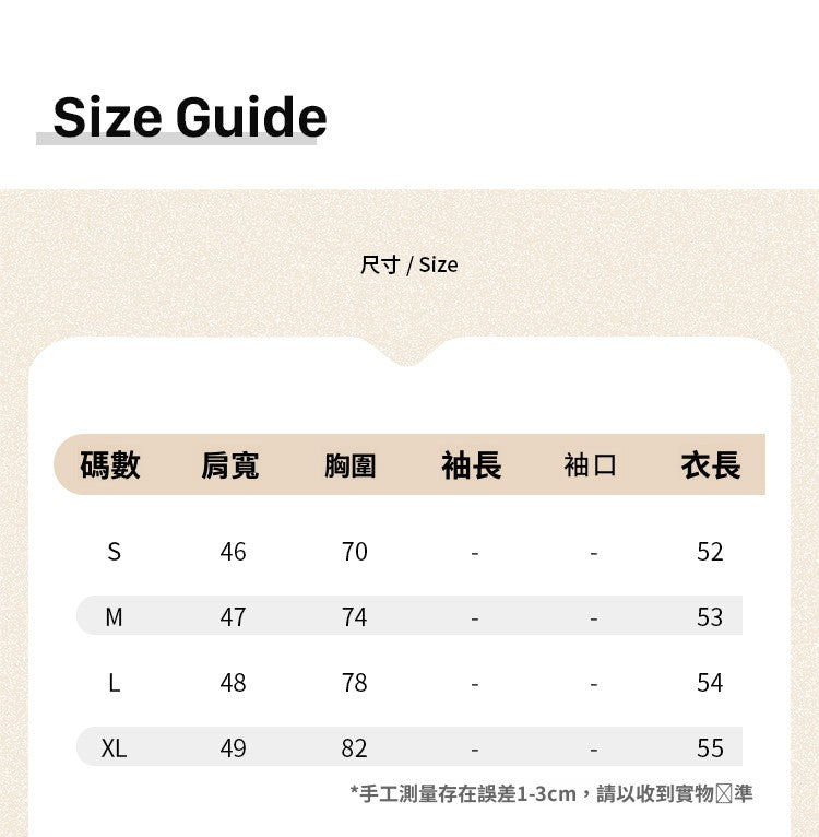 ☛下單前煩請參照衣服尺寸表,並對照自己尺寸後下單·尺碼的訂定, 毎款的標準都是不同的喔沒有一個固定的規格,挑選服裝依個人身材尺寸,還有平日穿衣習慣,要合身還是要寬鬆點都會有所不同,目前以日韓版服裝設計都偏向合身為主,建議喜歡寬鬆款可買大1-2碼