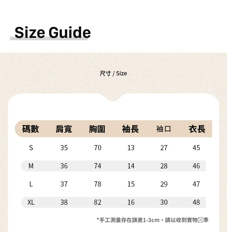 ※尺寸表皆以平放量並會因布料強性·水洗處理丶量測起訖點等因率,與實際商品尺寸略有誤差