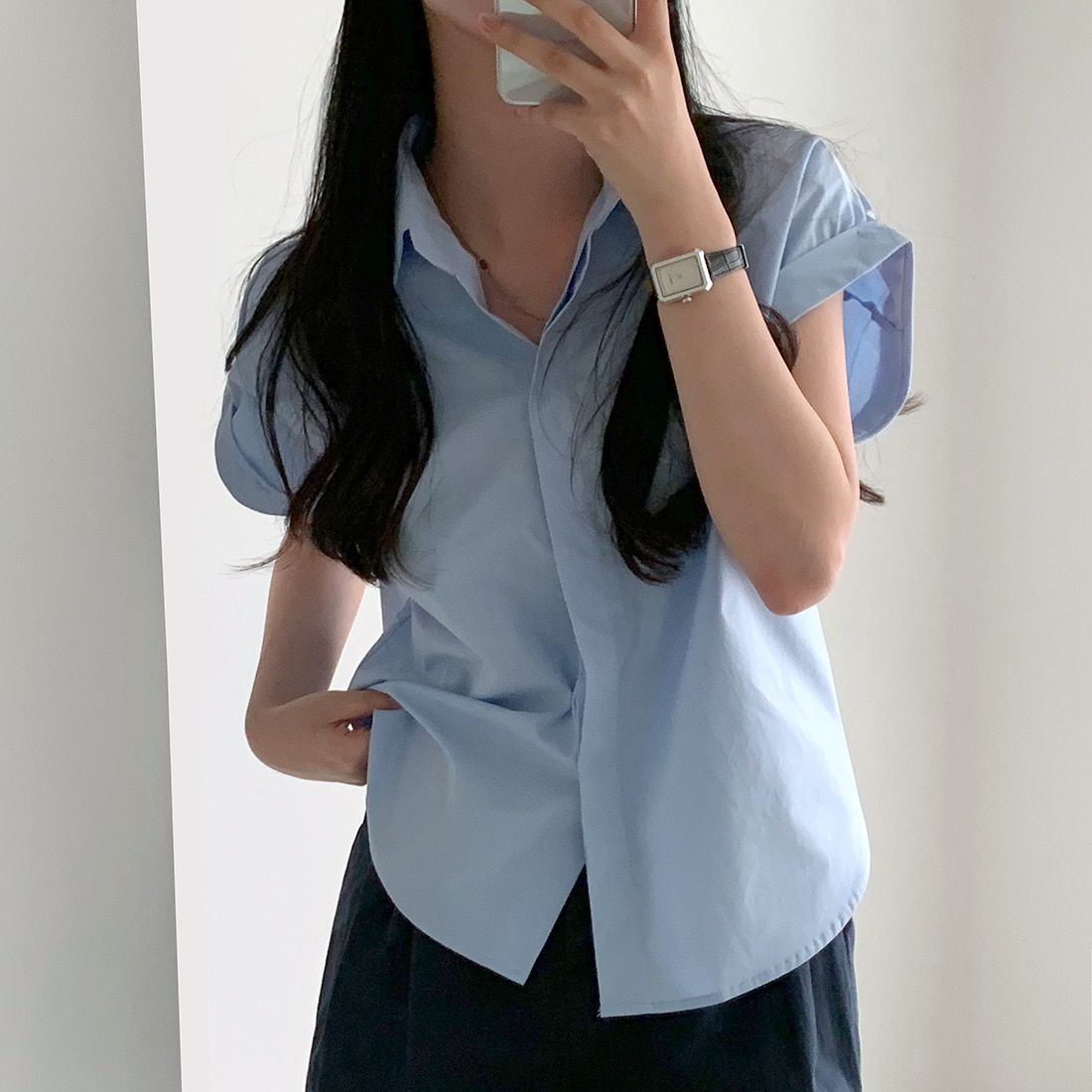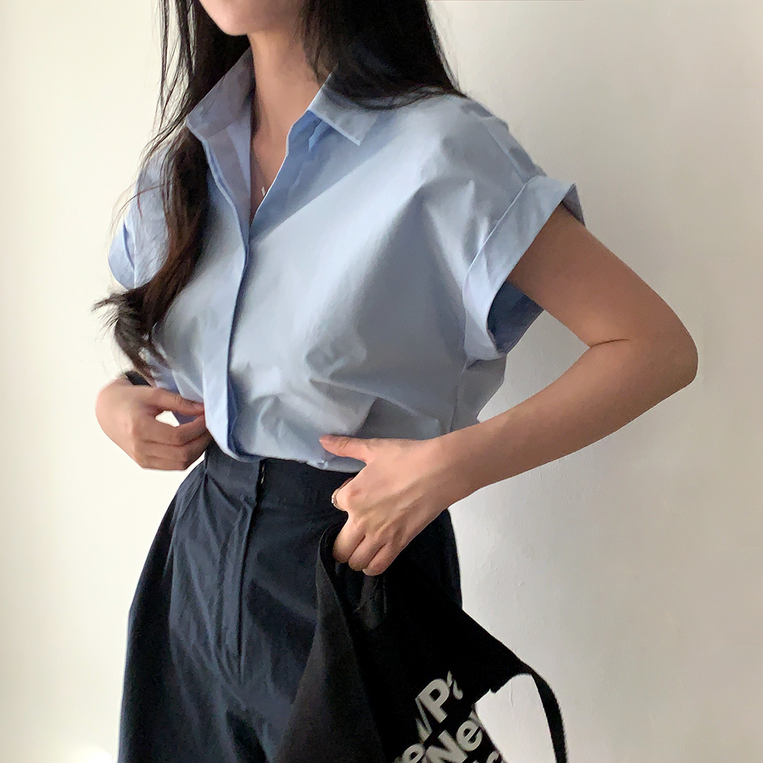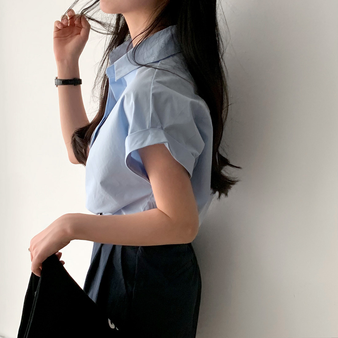 CGE3760-47B 極簡休閒經典百搭卷袖設計襯衫上衣(2色)