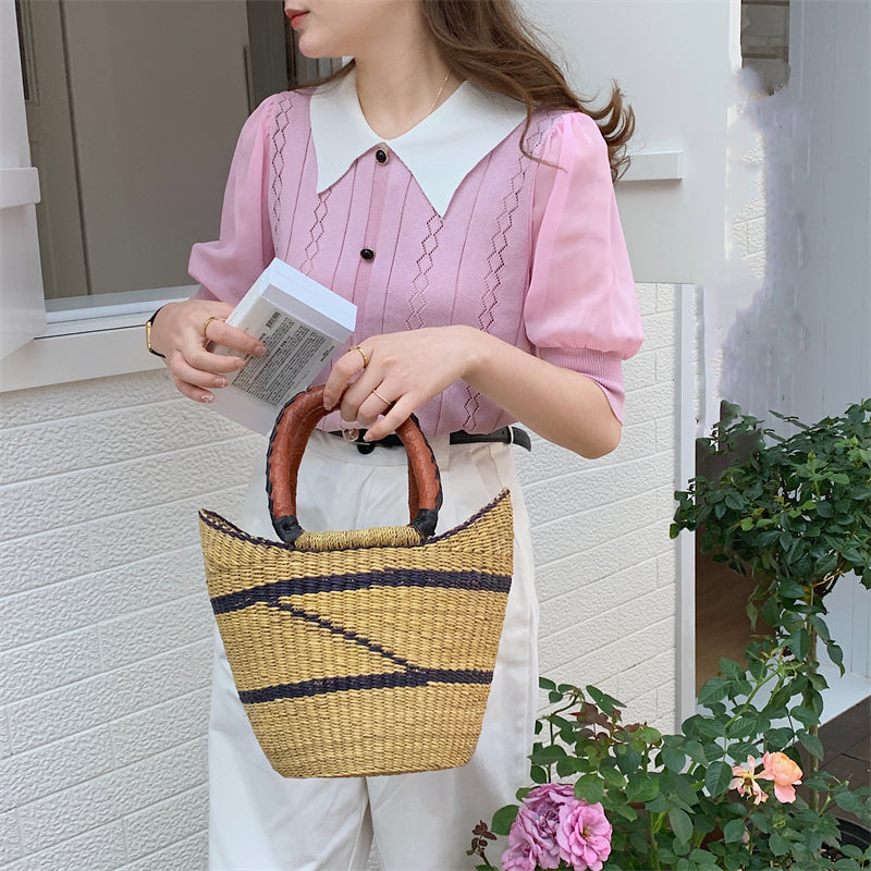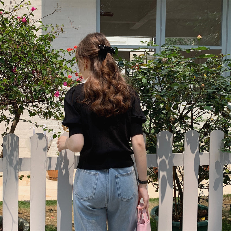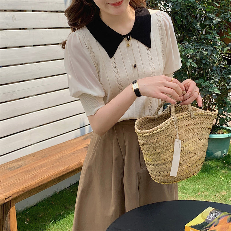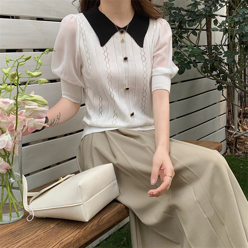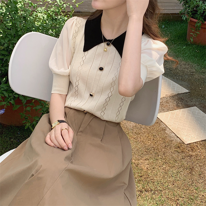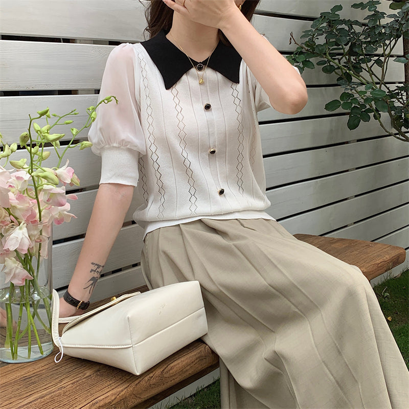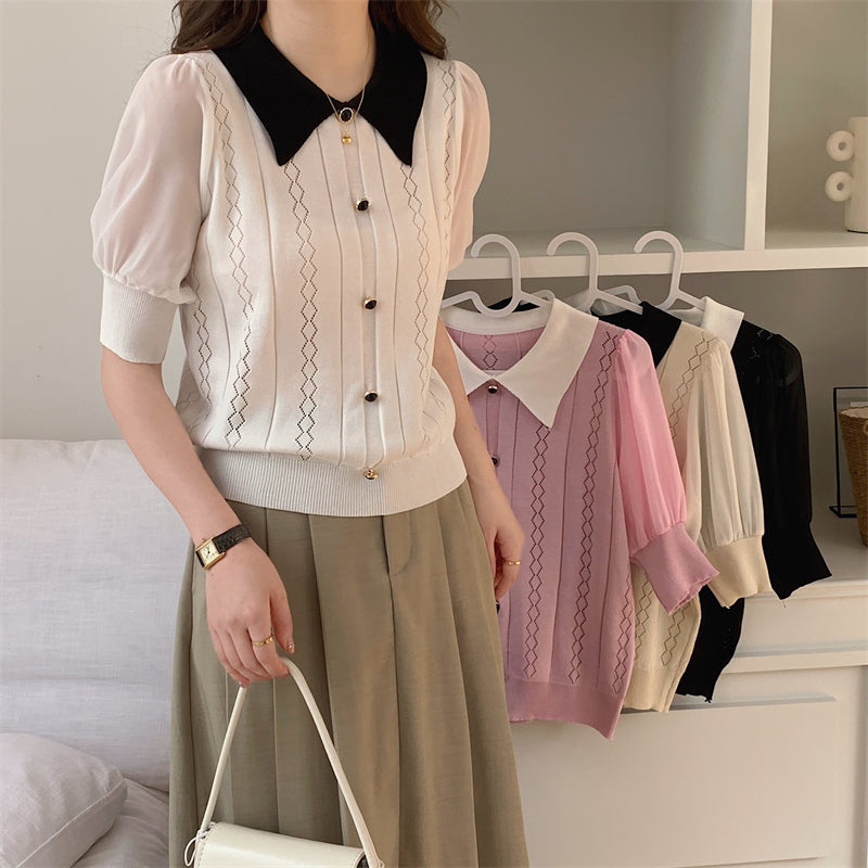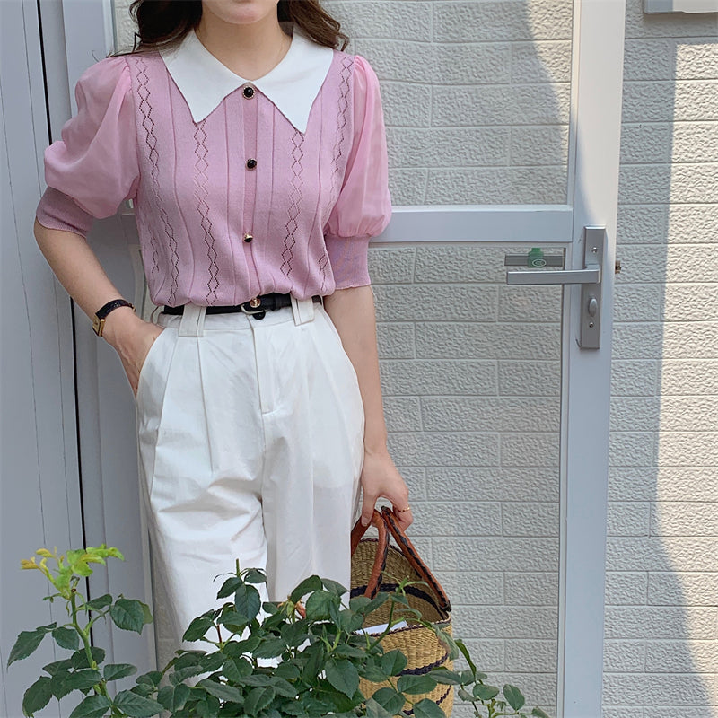 📺︎︎ CGE5059-88B 夏季針織娃娃領薄款寬鬆別致上衣(4色)
