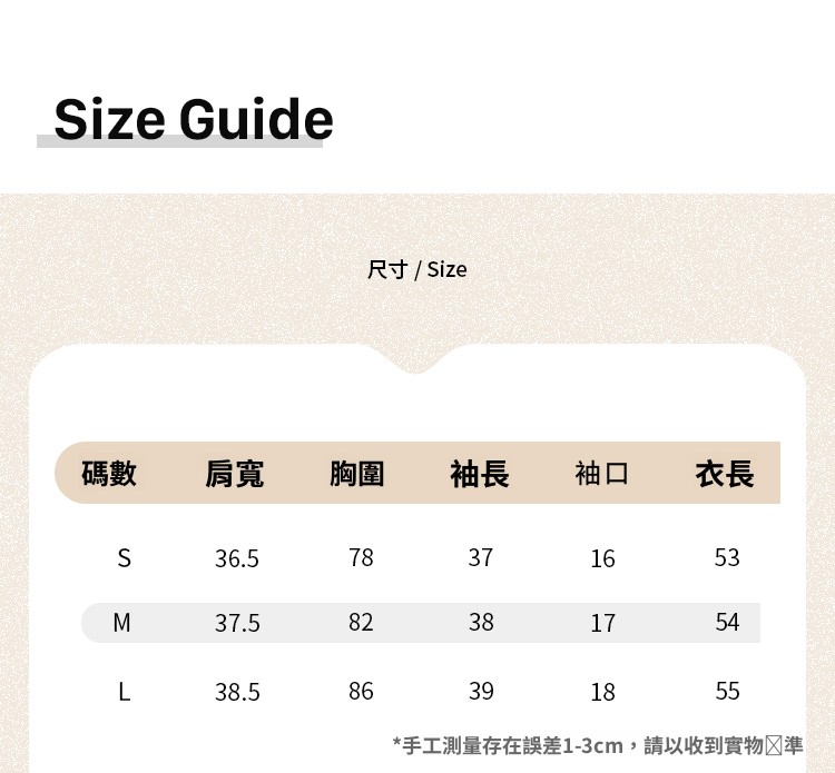 ※尺寸表皆以平放量並會因布料強性·水洗處理丶量測起訖點等因率,與實際商品尺寸略有誤差