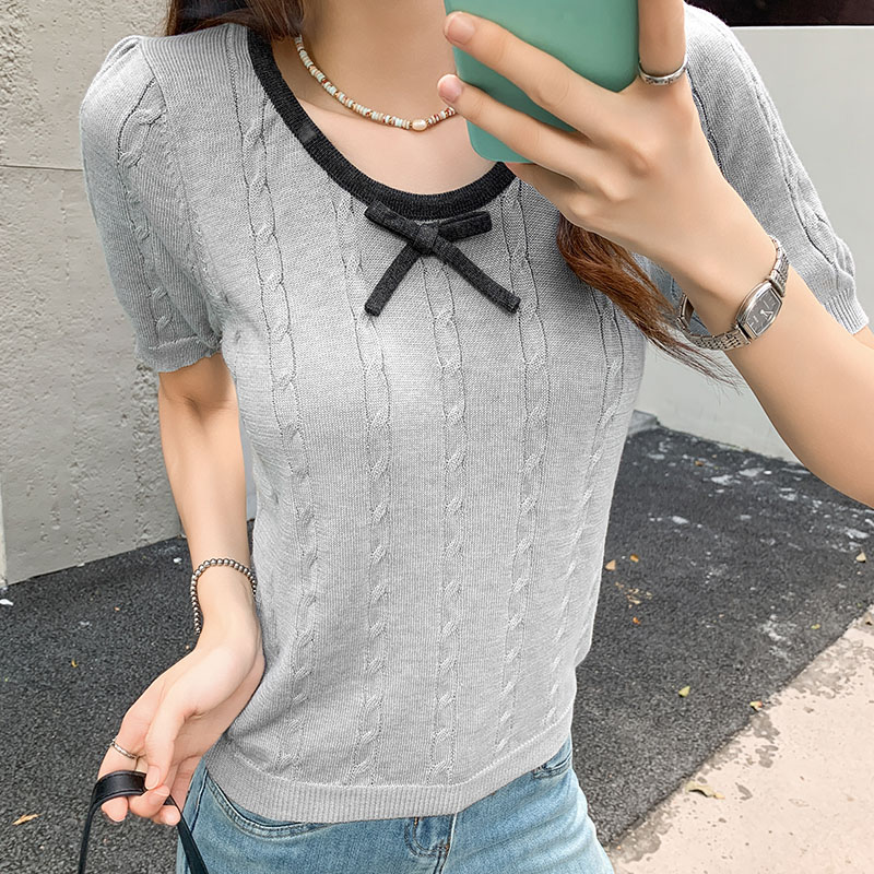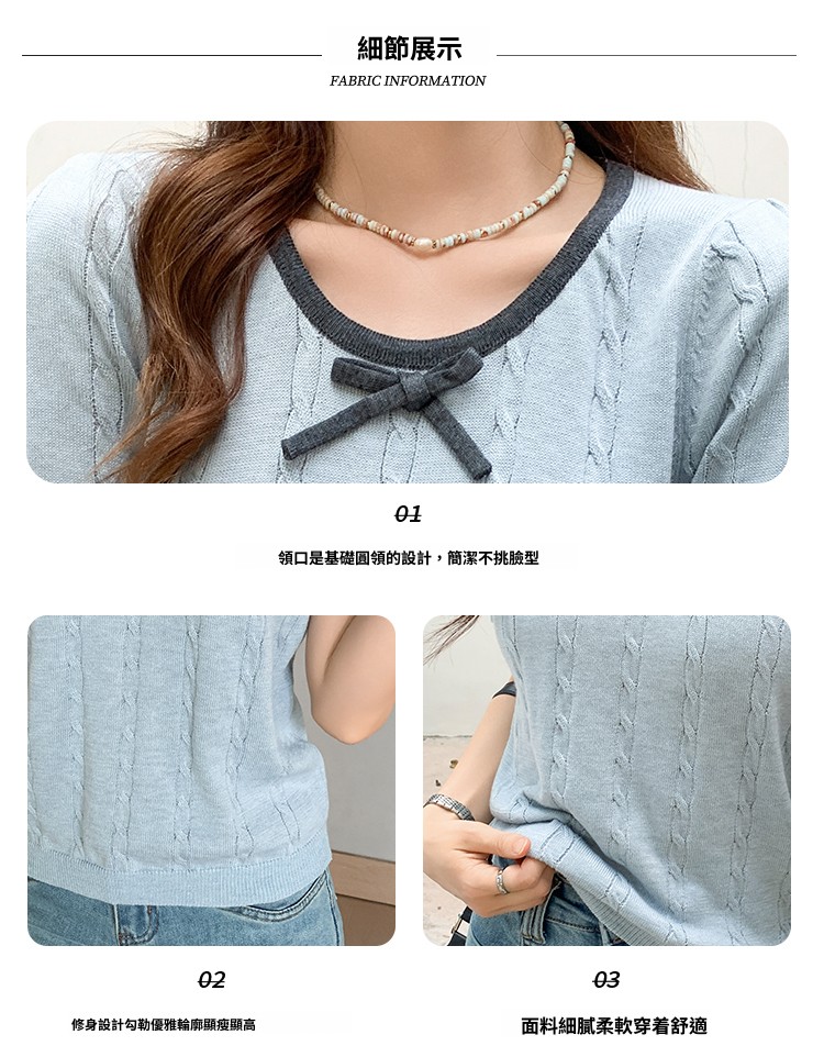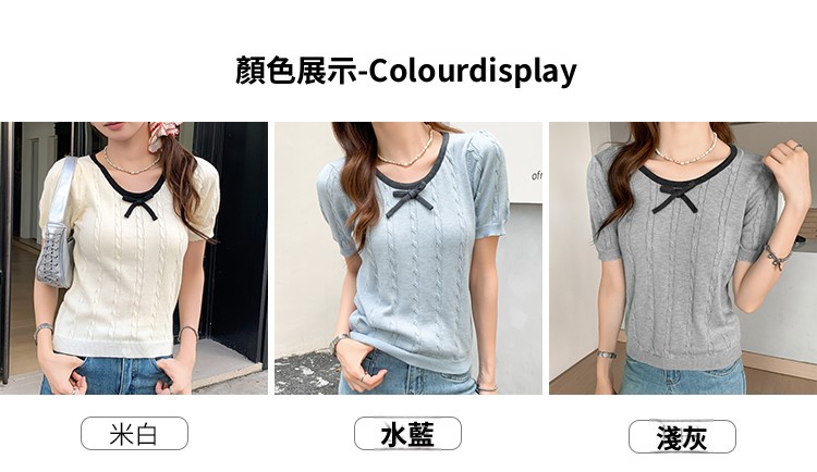 CGEZD118-42B 蝴蝶結V領撞色短袖針織衫(3色)