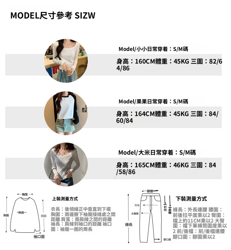 ※尺寸表皆以平放量並會因布料強性·水洗處理丶量測起訖點等因率,與實際商品尺寸略有誤差
