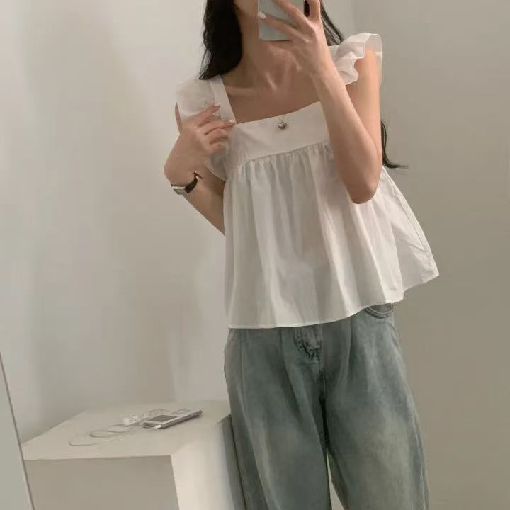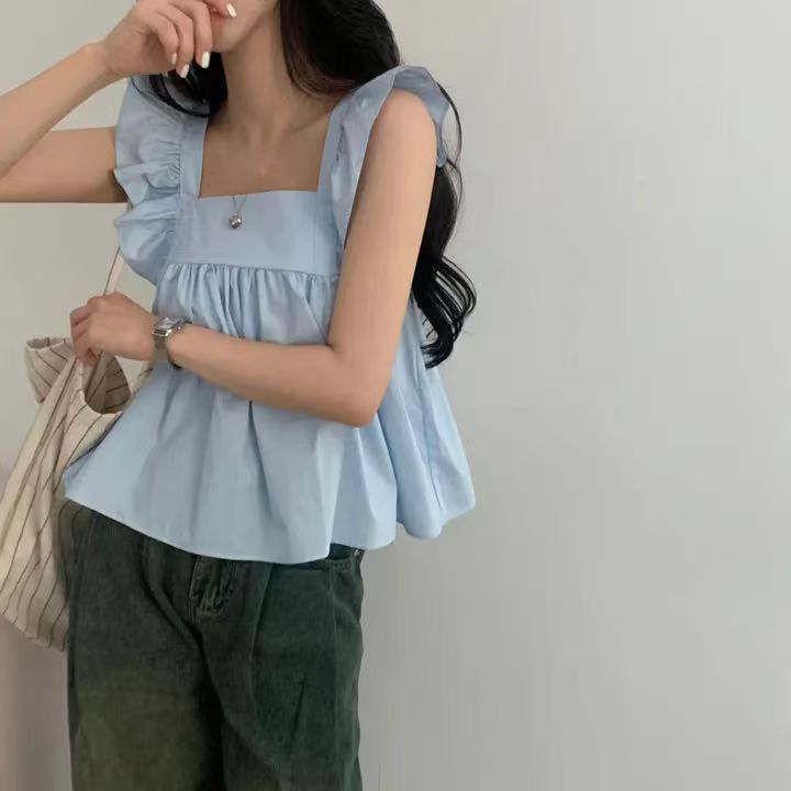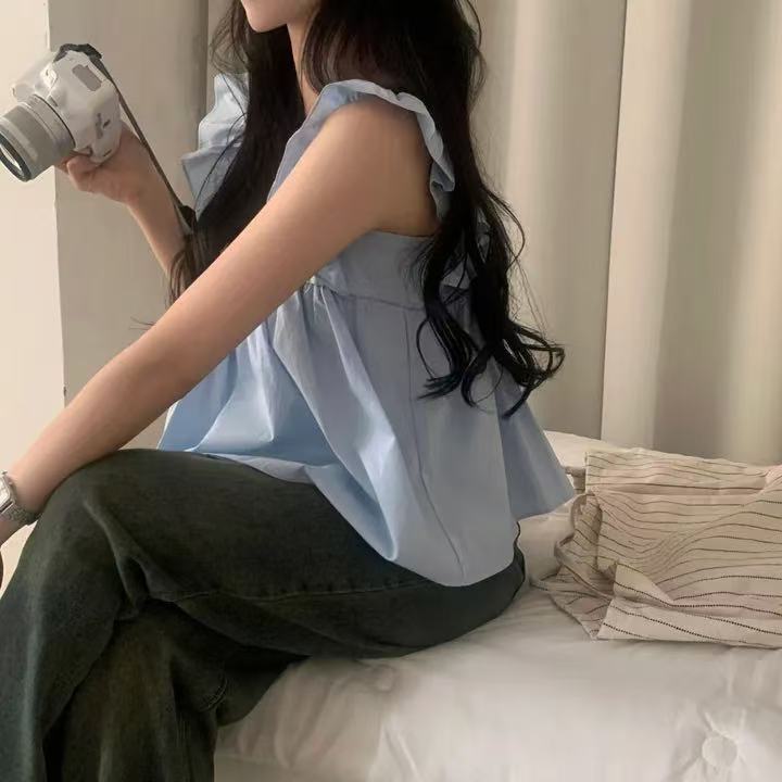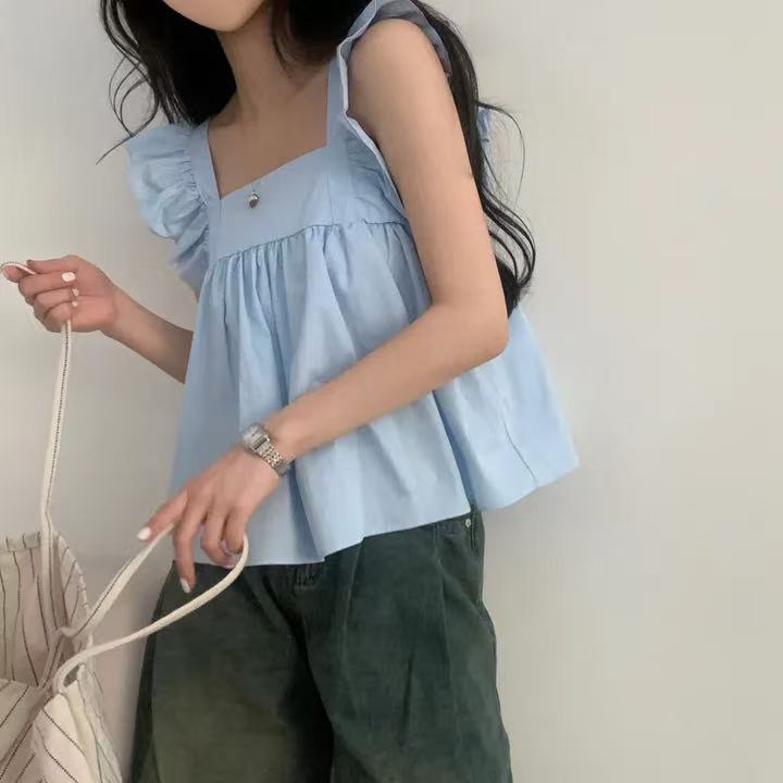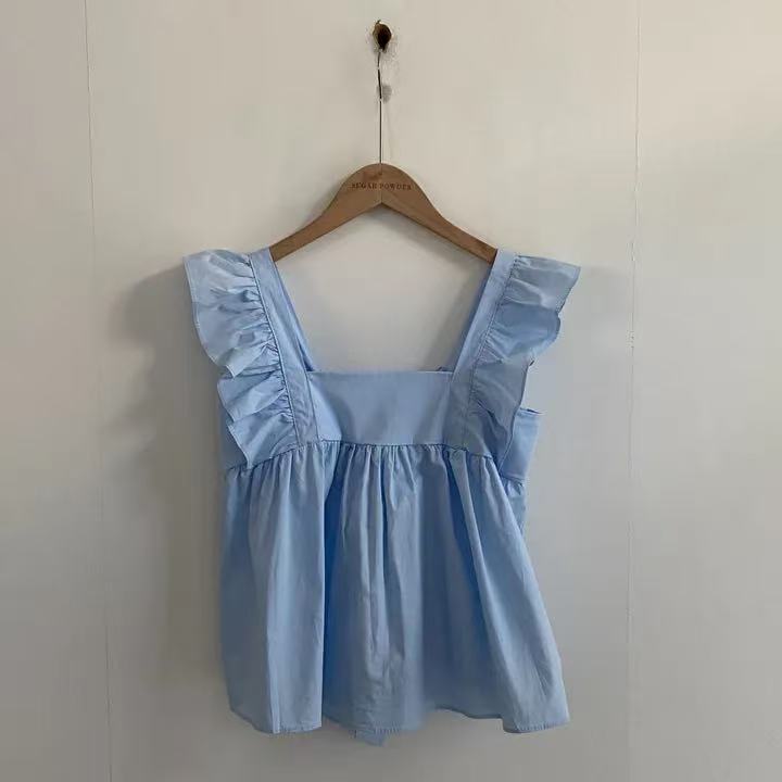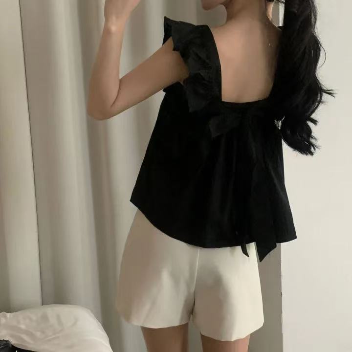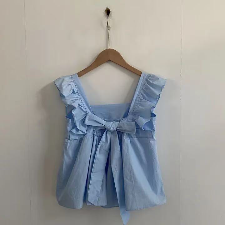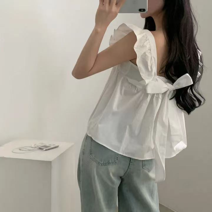 CGF13896-17B 飛飛袖後背系帶蝴蝶結背心上衣(3色)