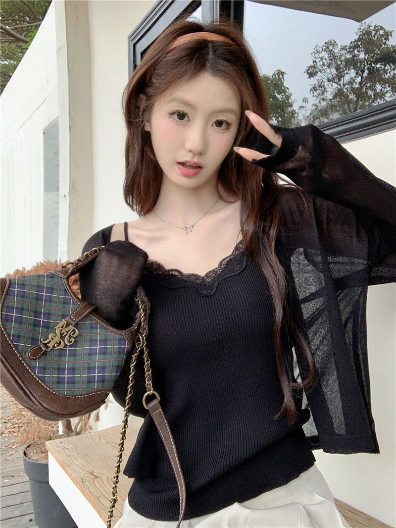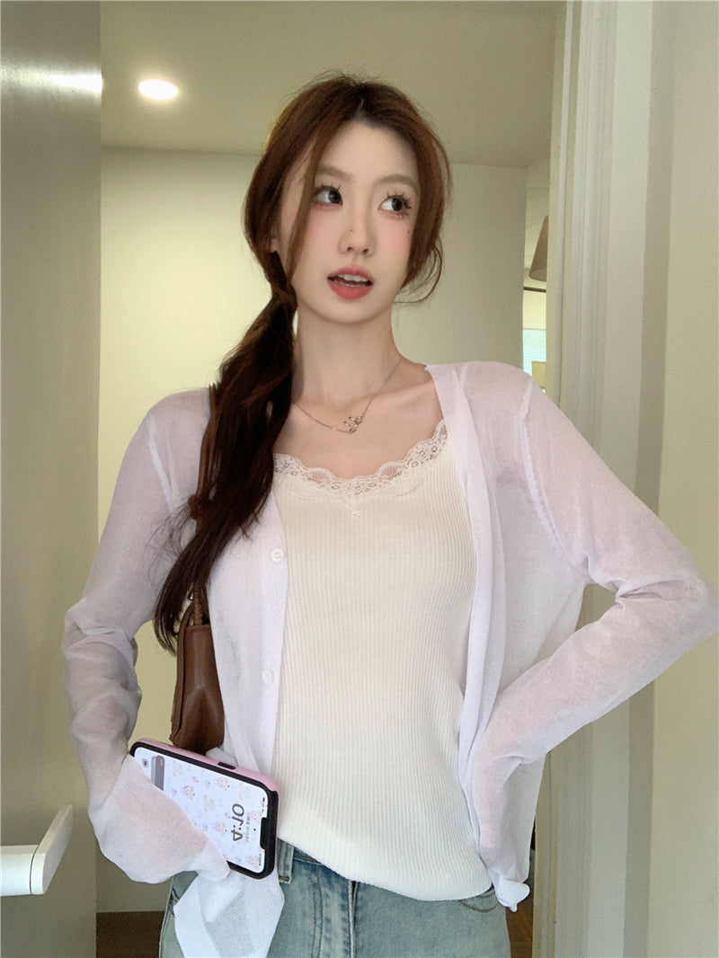 CGF80006-71B 春夏蕾絲內搭吊帶背心+防嗮衫(6色)