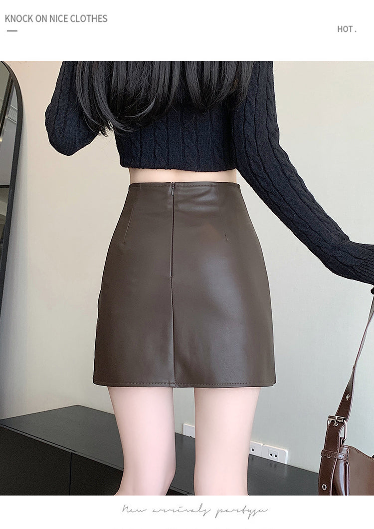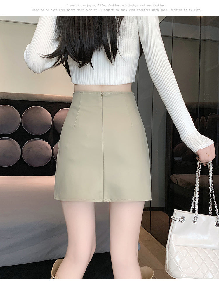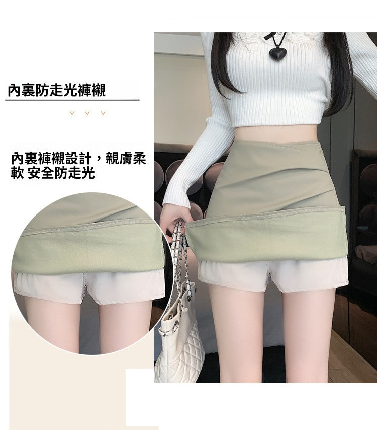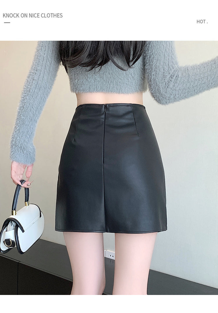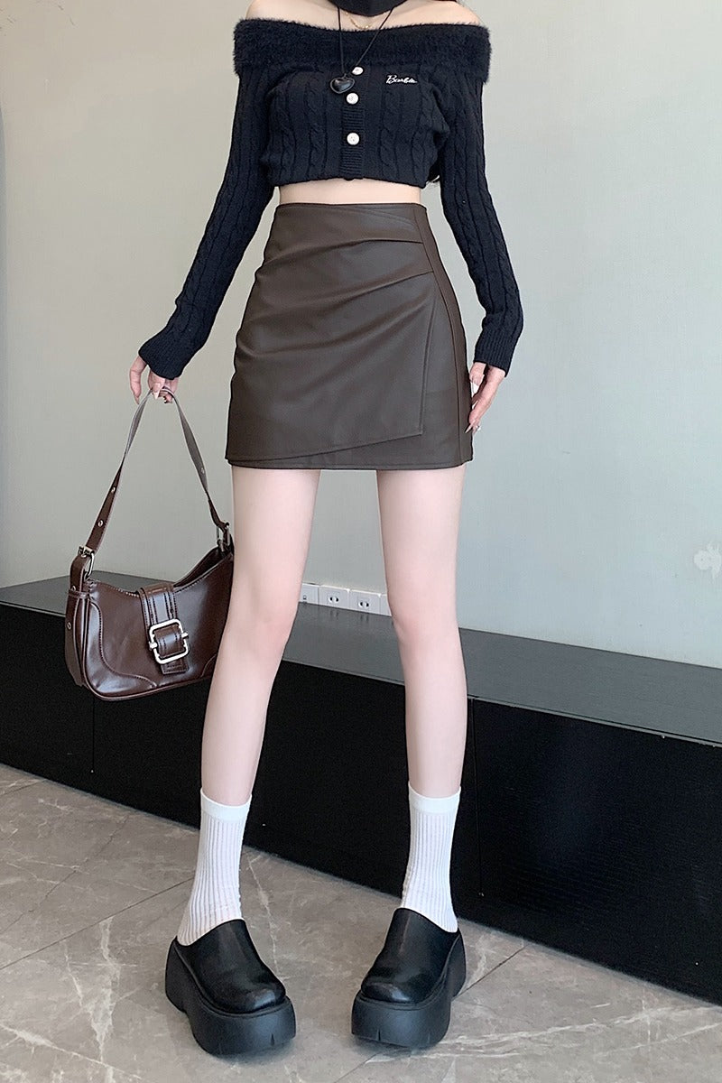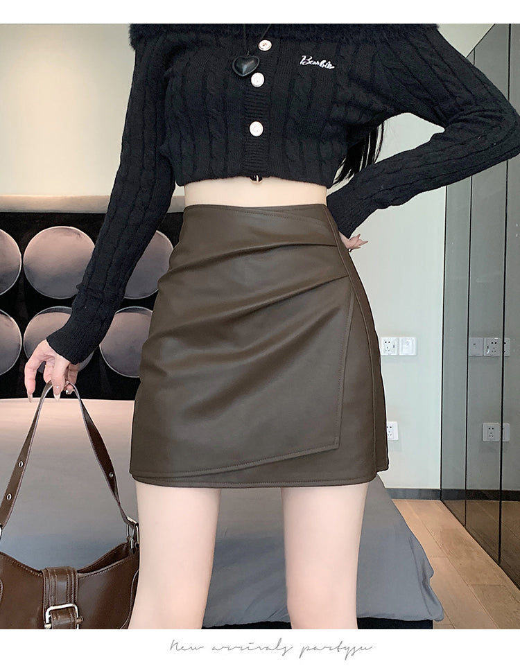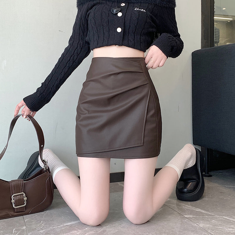 📺︎︎ CGS1134-58B 秋高腰褶皺柔軟皮不規則包臀PU皮A字半身裙短裙(3色)