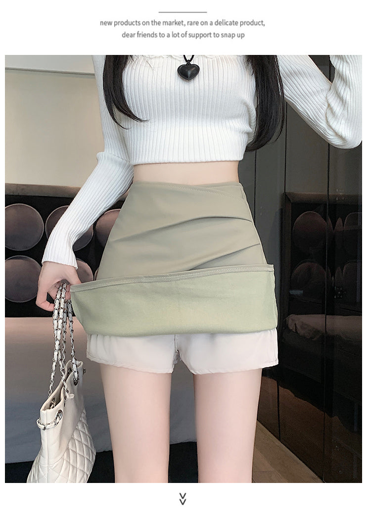 面料工藝:褶皺 裙長:短裙 款式細節:褶皺+不對稱