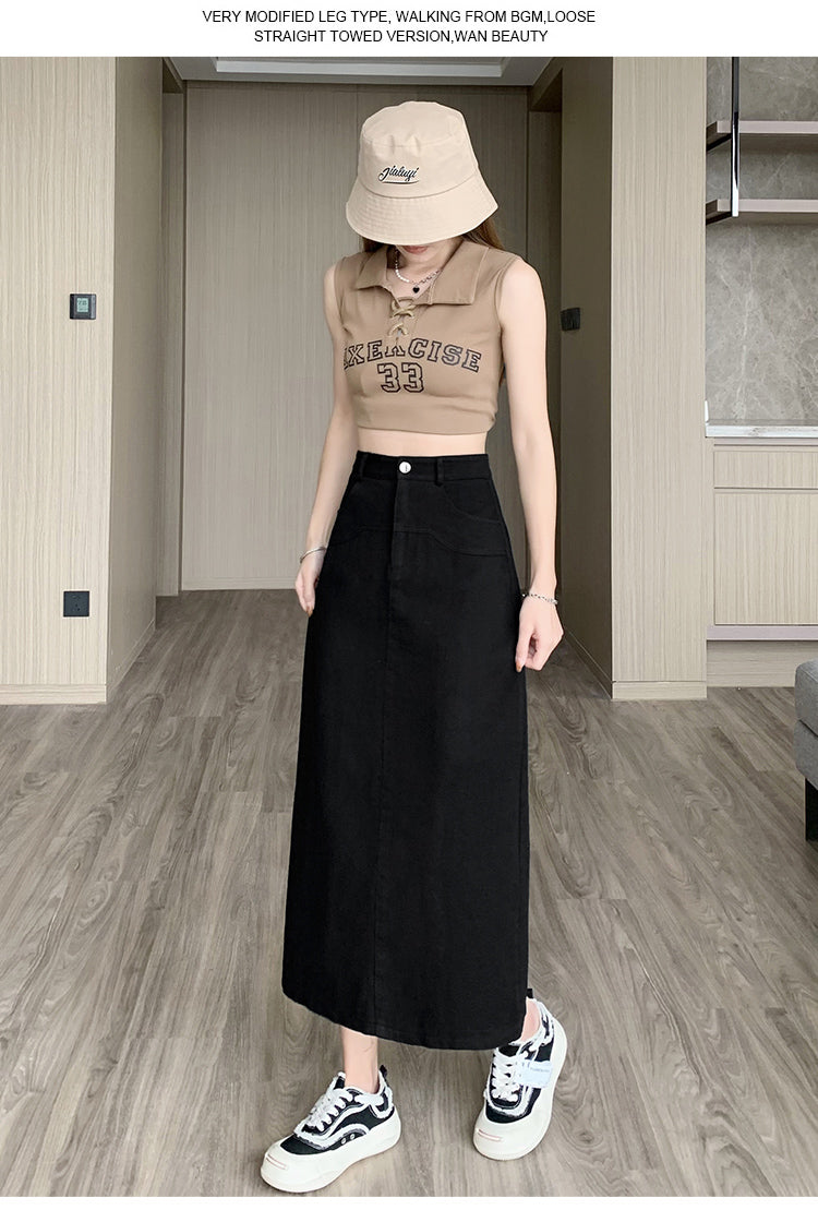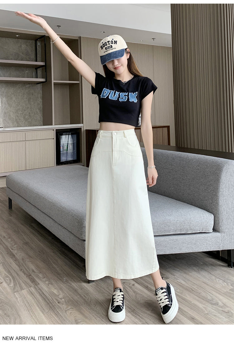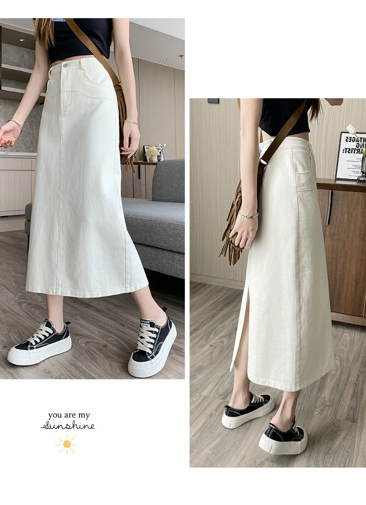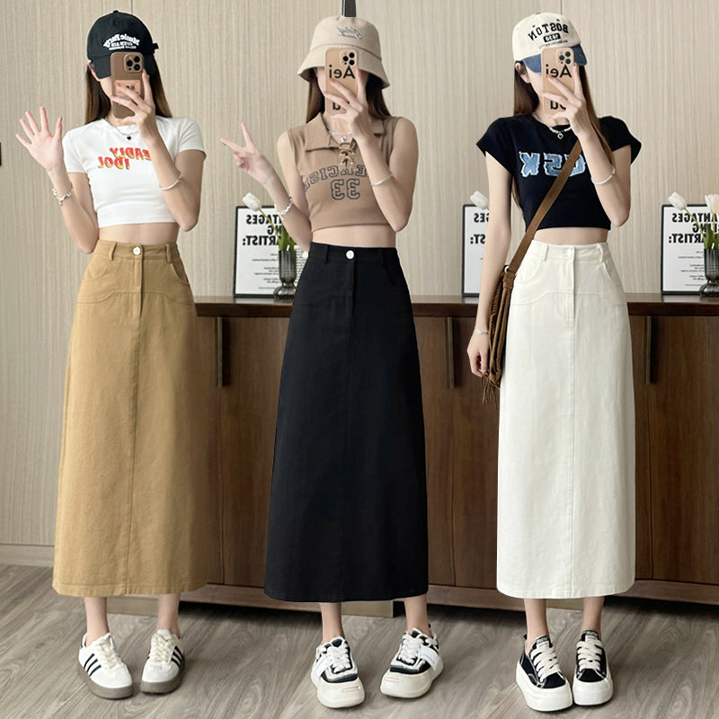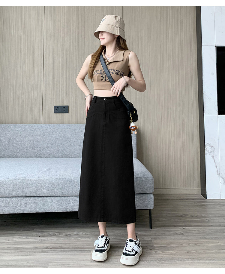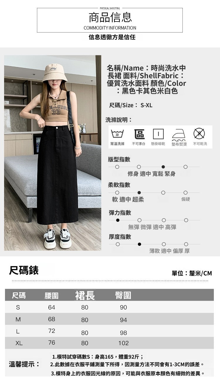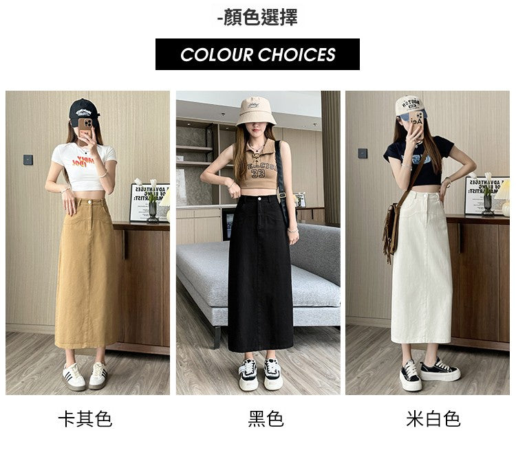 📺︎︎ CGS8080-82B 洗水牛仔A字半身裙中長款夏高腰包臀裙(3色)