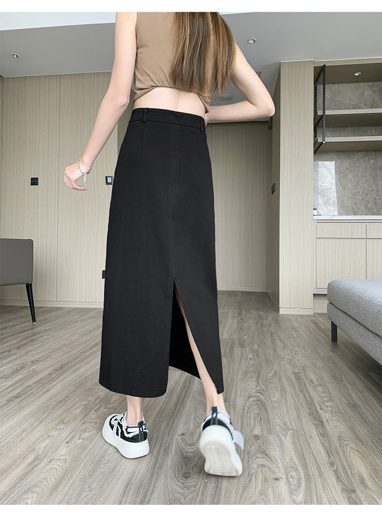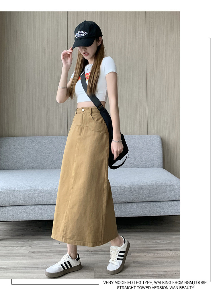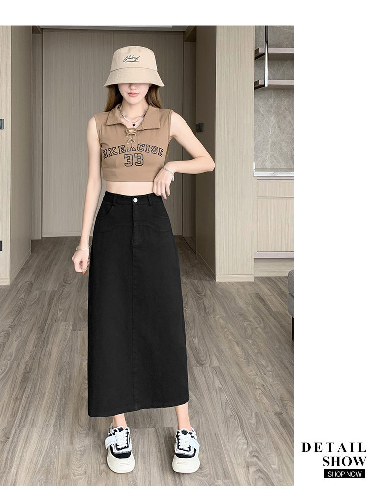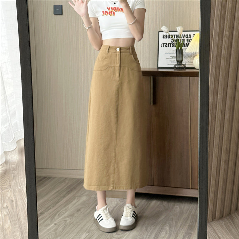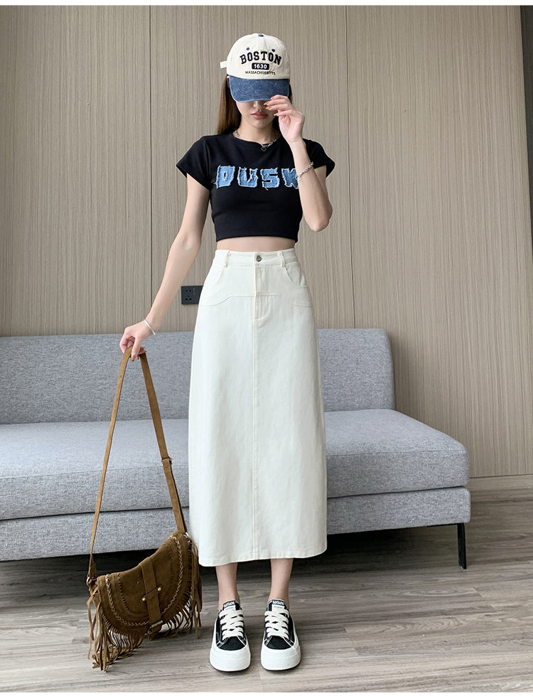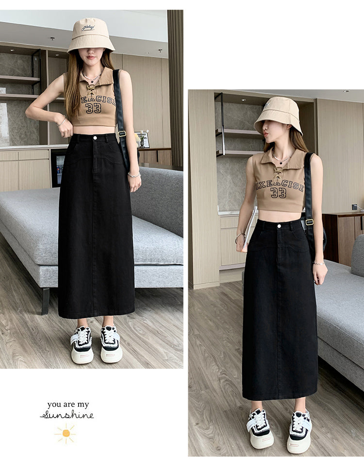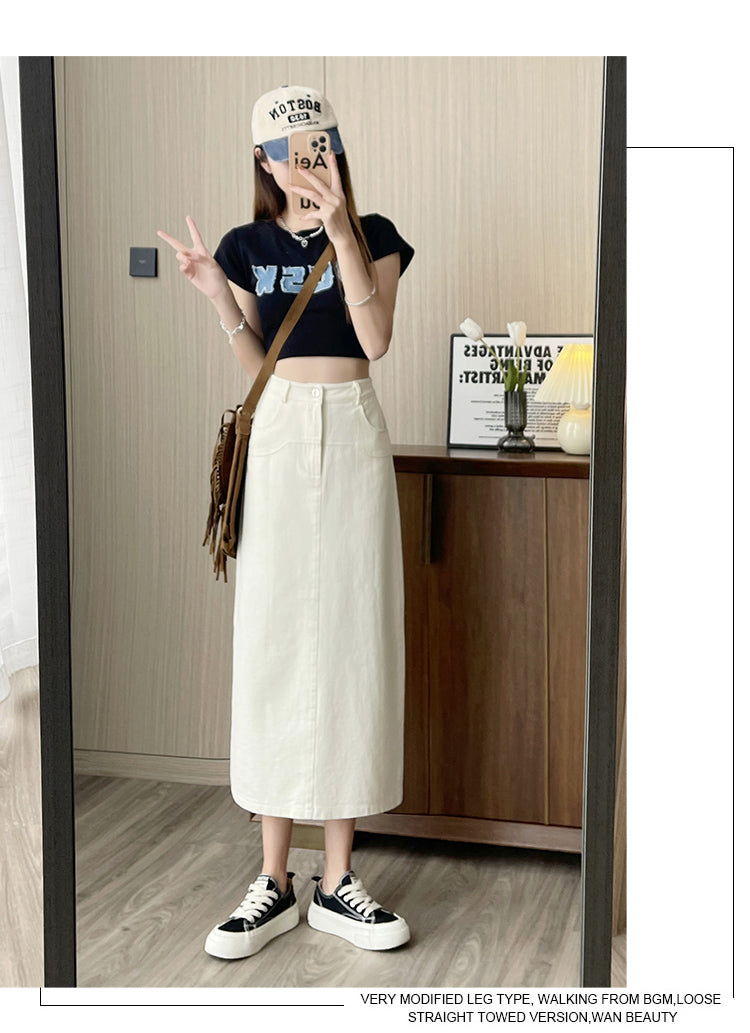 📺︎︎ CGS8080-82B 洗水牛仔A字半身裙中長款夏高腰包臀裙(3色)