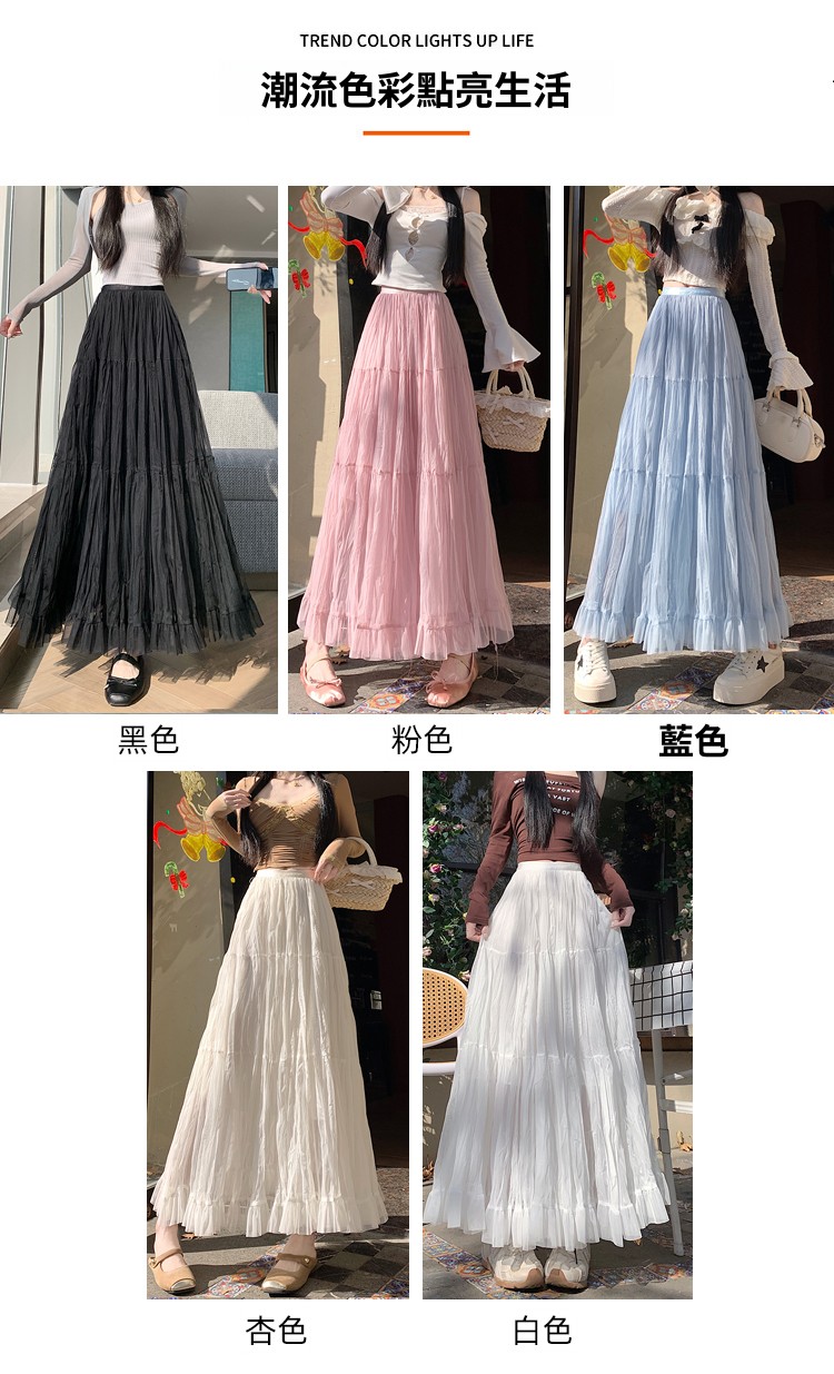 📺︎︎ CGS8606-36H 拼接蛋糕裙春季寬鬆垂感褶皺紗裙(5色)