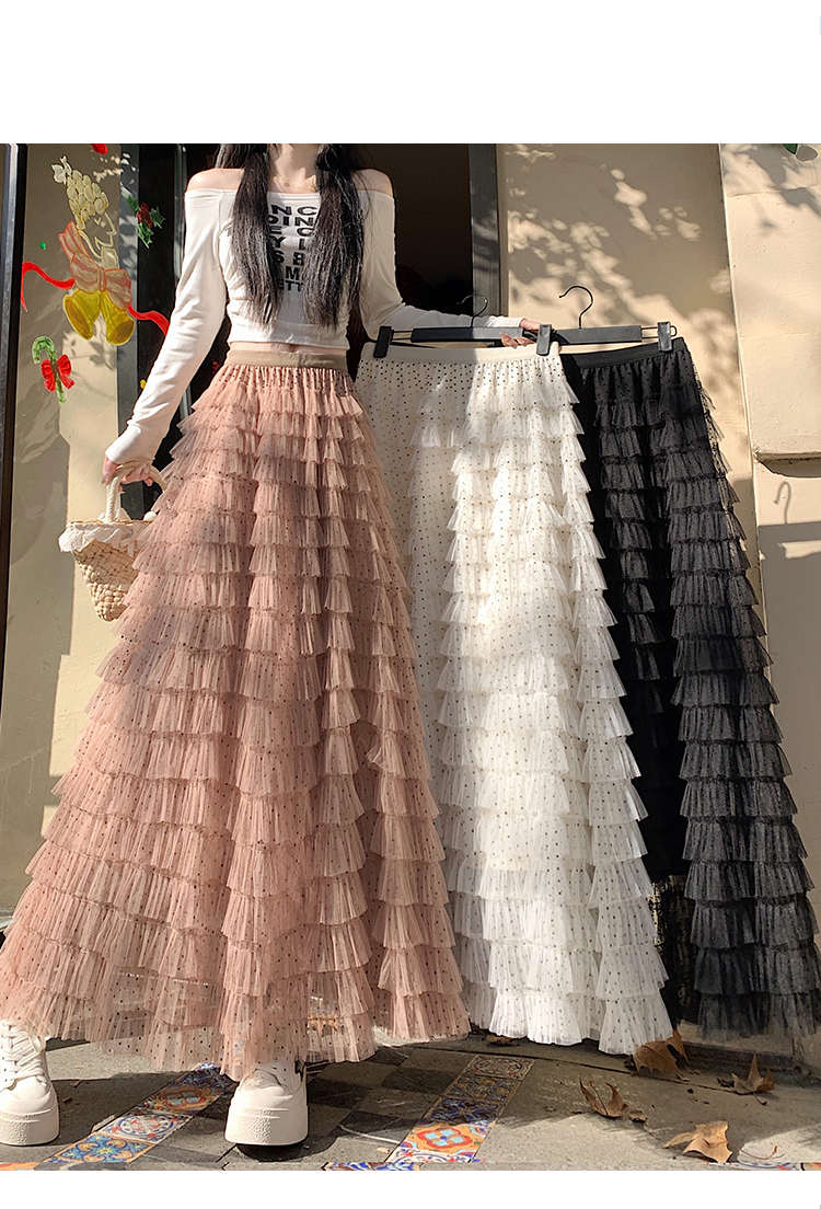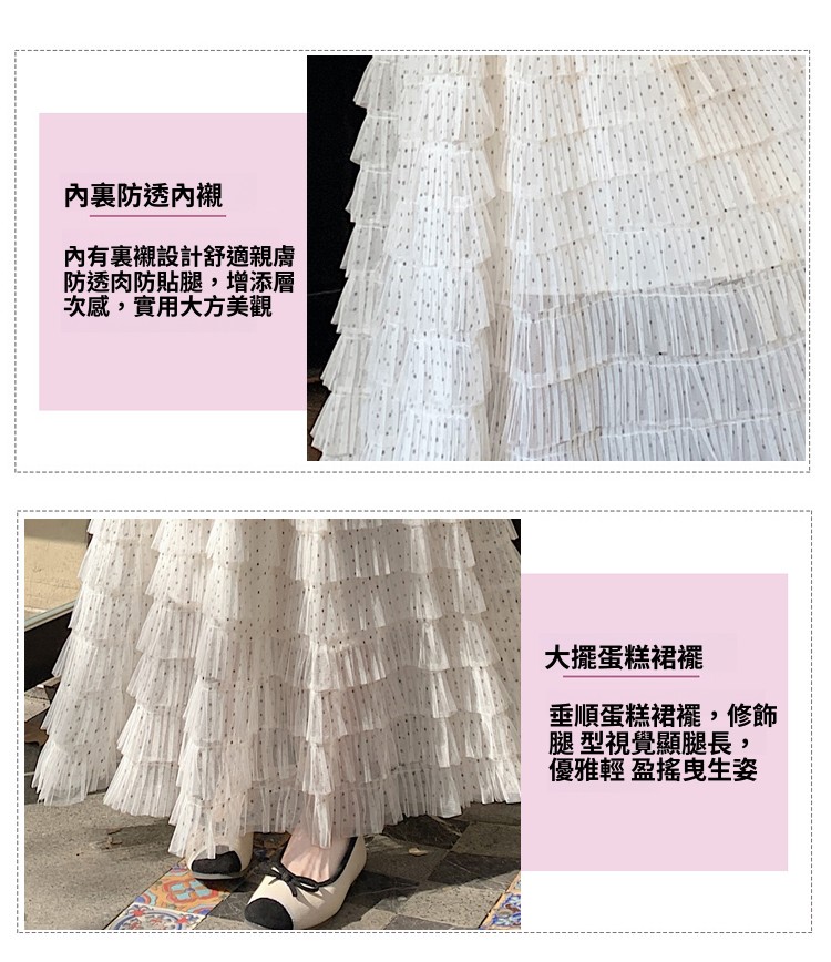 📺︎︎ CGS8624-36H 波點蕾絲網紗蛋糕裙半身裙(3色)